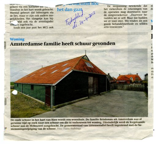 Tot onze grote verrassing stonden we op 24 april in het Fries Dagblad. De aannemer had het voor ons bewaard.