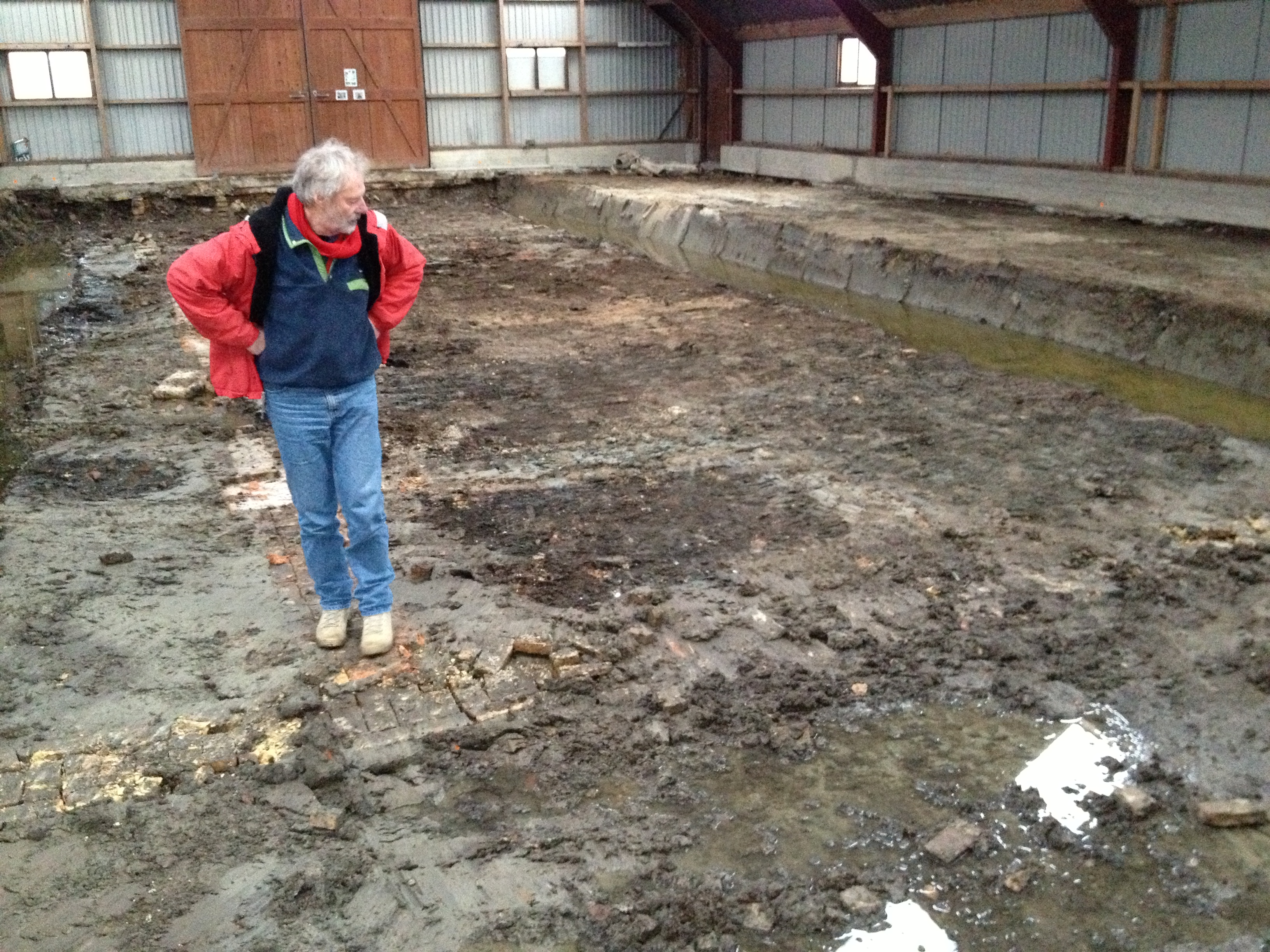 De laatste graafwerkzaamheden zijn uitgevoerd door Jaap Hoekstra. De schuur is op diepte gebracht, klaar om de palen te slaan. Om de schuur heen is nu alles weg. De palen van het hek zijn eruit getrokken en de mesthoek is weggehaald. De betonplaten die daarvandaan kwamen worden later weer gebruikt als kopwanden voor de te graven sloot.