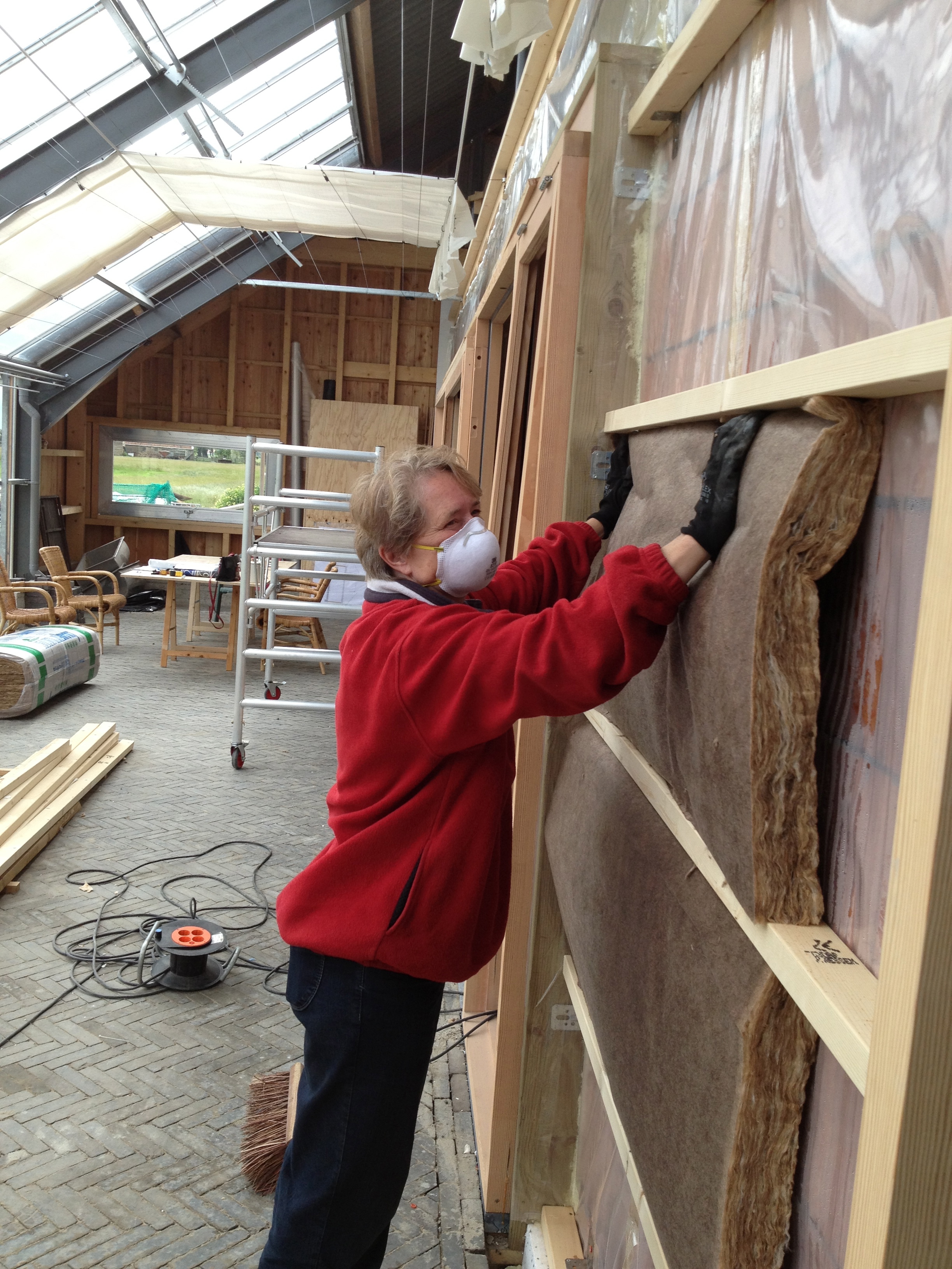 Elke grote oplegger, of vrachtauto stopt nog wel bij ons voor de deur, want van tijd tot tijd worden er grote stapels hout, isolatie en dergelijken bij ons naar binnen gereden. De wanden zijn inmiddels voorzien van de eerste laag steenwol.