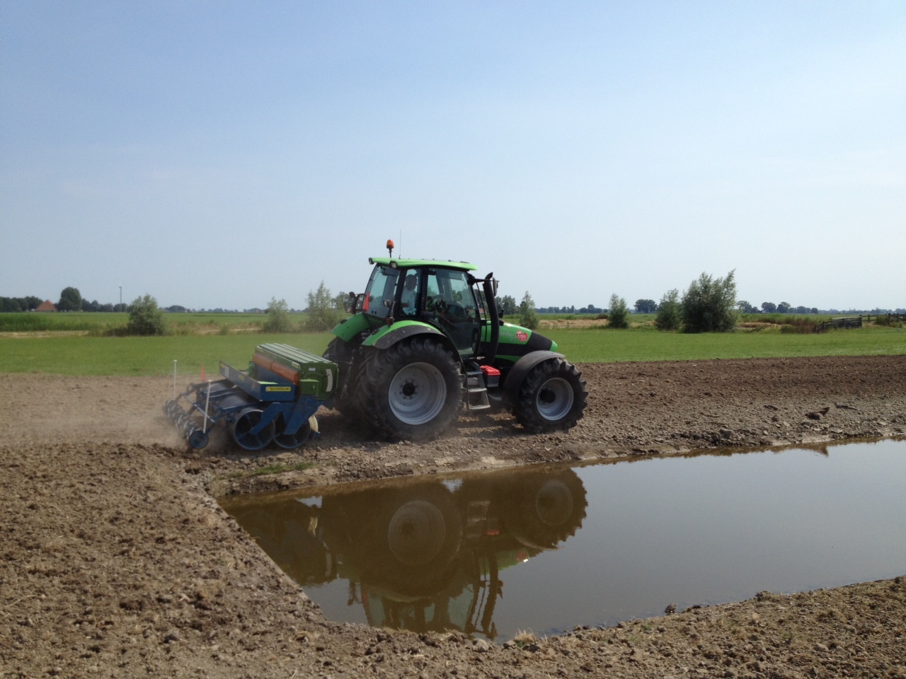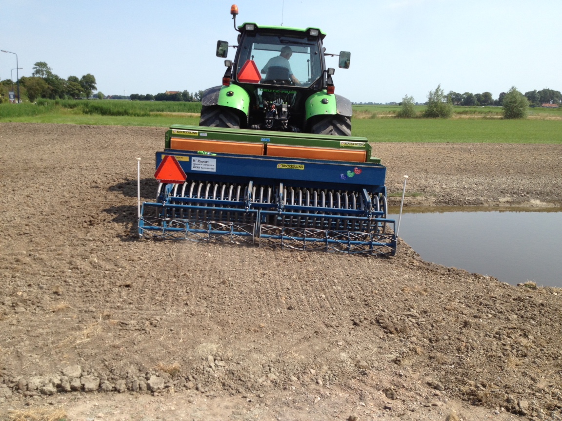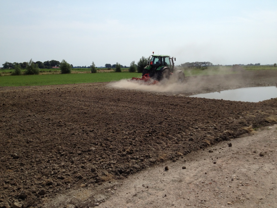 Weg met dat bruine uitzicht! Morgen wordt er regen verwachten Rispens zaaide vandaag gras in. We zijn benieuwd hoe snel alles weer groen is!