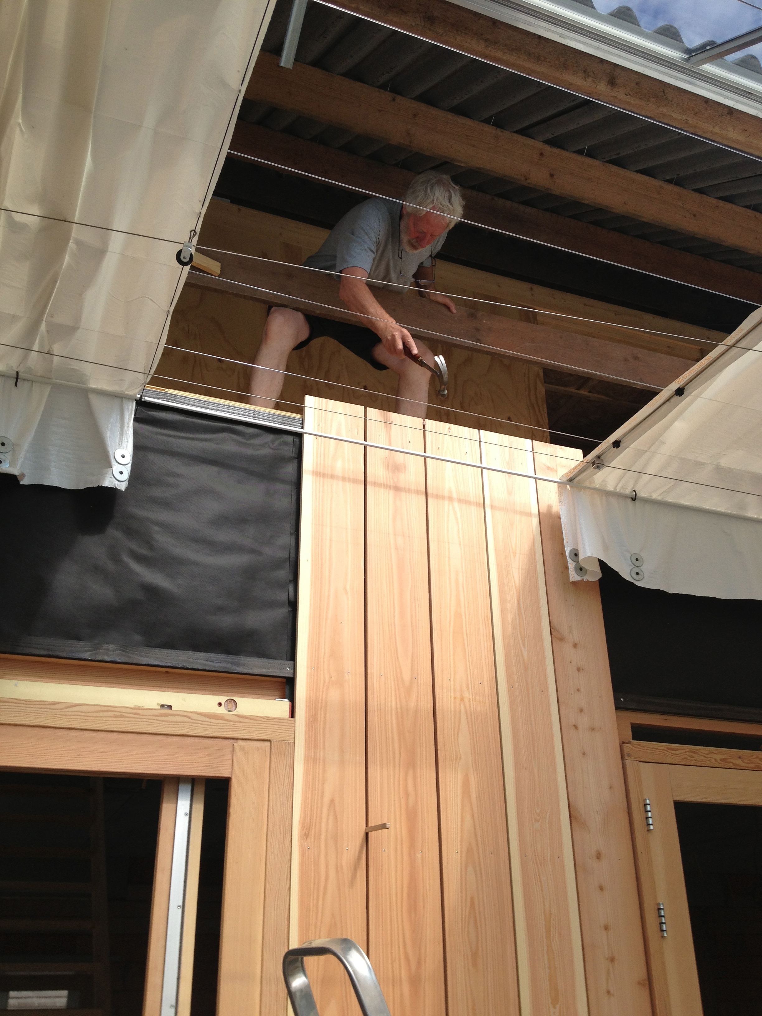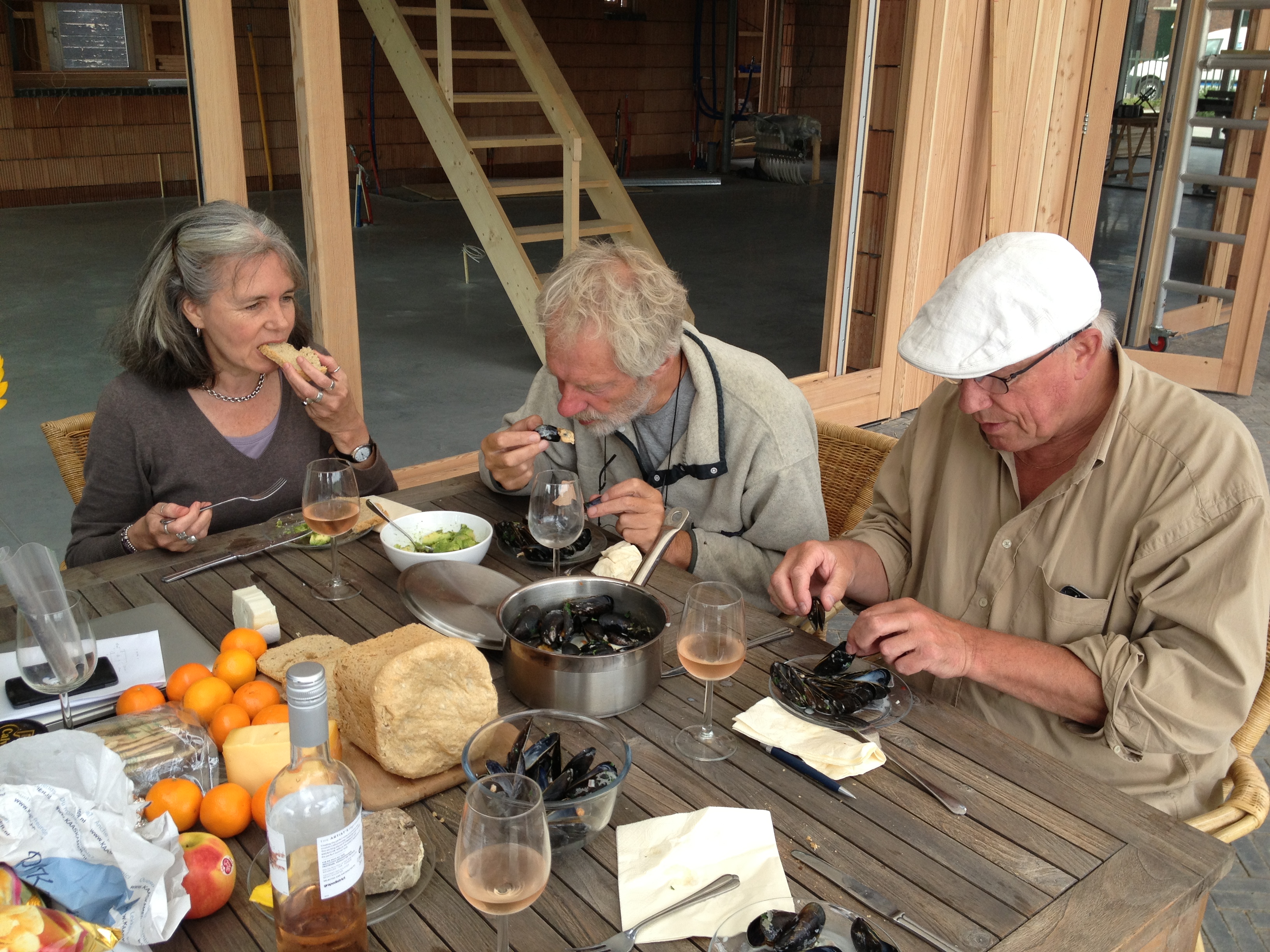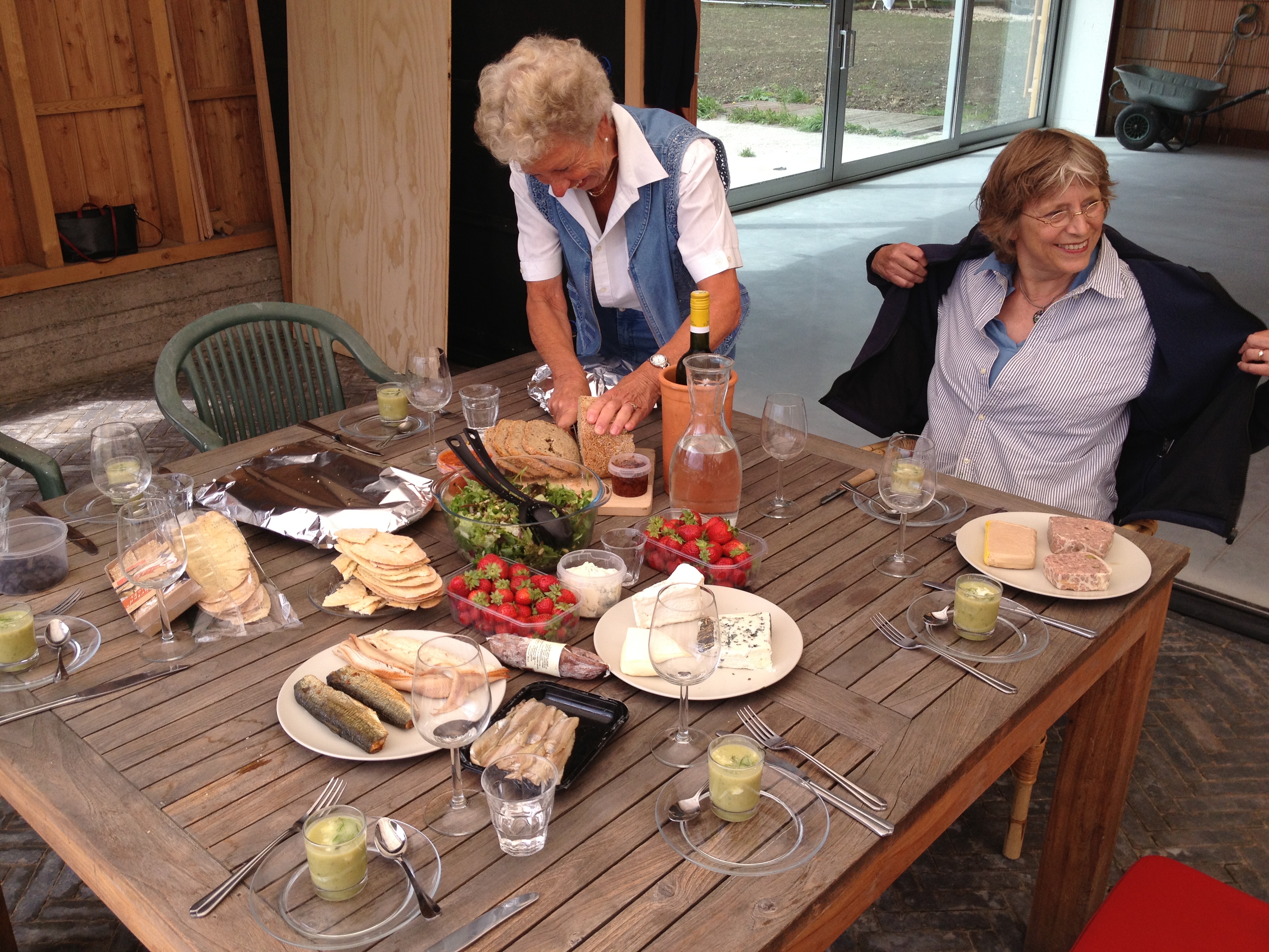 Het was weer een prettig weekend. Een begin gemaakt met de betimmering van de wand in de wintertuin, en verder heeeel veeeel ‘geluncht’ met veel mensen. Het dorp kan dit soort lunches waarschijnlijk allemaal goed volgen want alle etenswaren moeten van de Buorren naar Molmawei, en de resten en de afwas moet vervolgens weer van Molmawei naar de Buorren. Zaterdag was er zoveel te transporteren dat het hele bezoek in ganzenpas met de afwas door het dorp liep!