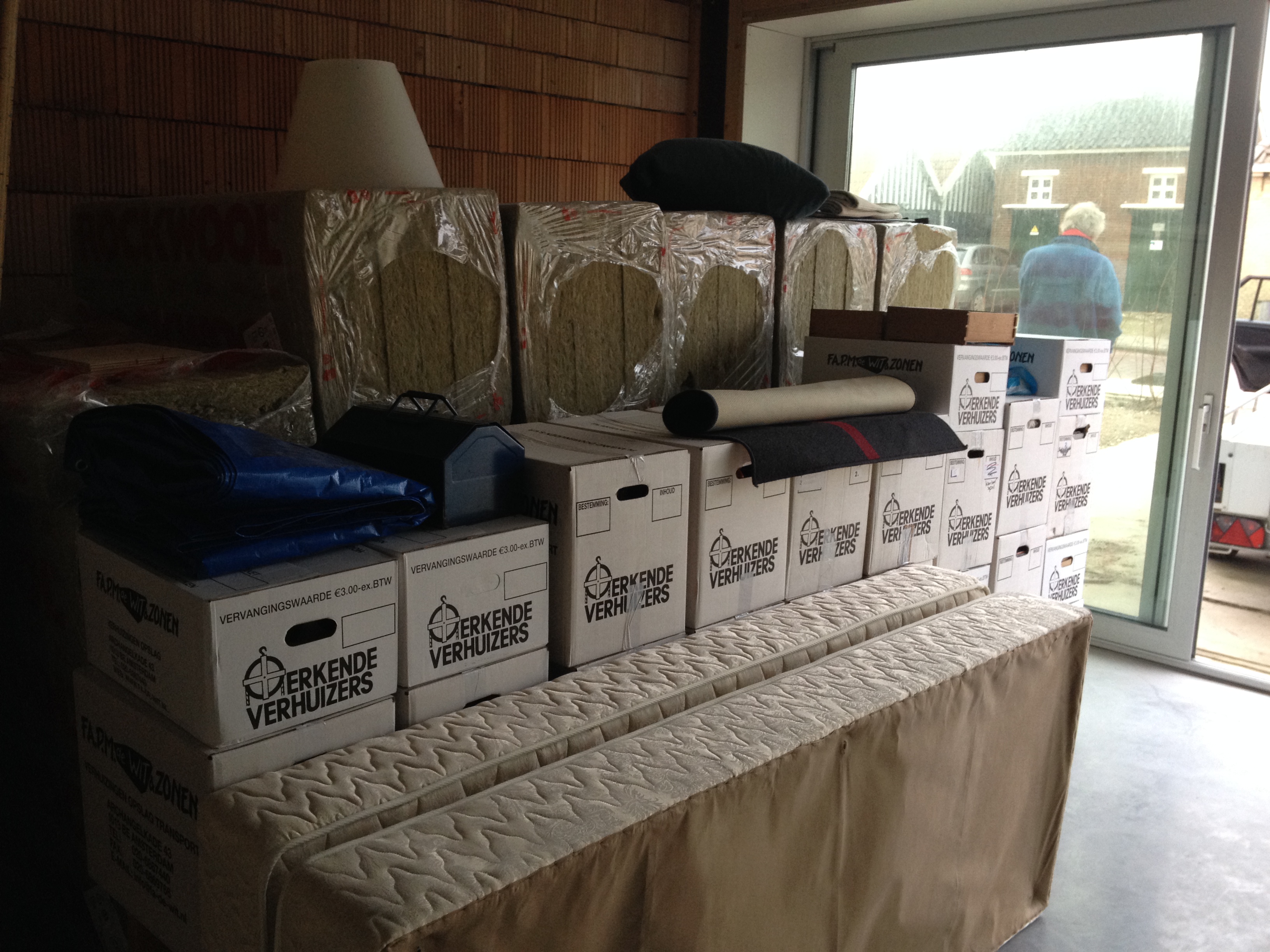 Vorige week begon met een rit naar De Wit, waar alle spullen van de Herengracht in de container stonden opgeslagen. Met een aanhanger vol richting Friesland. Intussen is de begane grond provisorisch gezellig gemaakt met kerstlichtjes, kaarsen en een heuse voorlopige ‘zithoek’, in wat later onze slaapkamer moet worden. De eerste verdieping ziet eruit als een echt huis. Witte wanden, vloerbedekking, een bed en de badkamer en de wc spic en span betegeld.