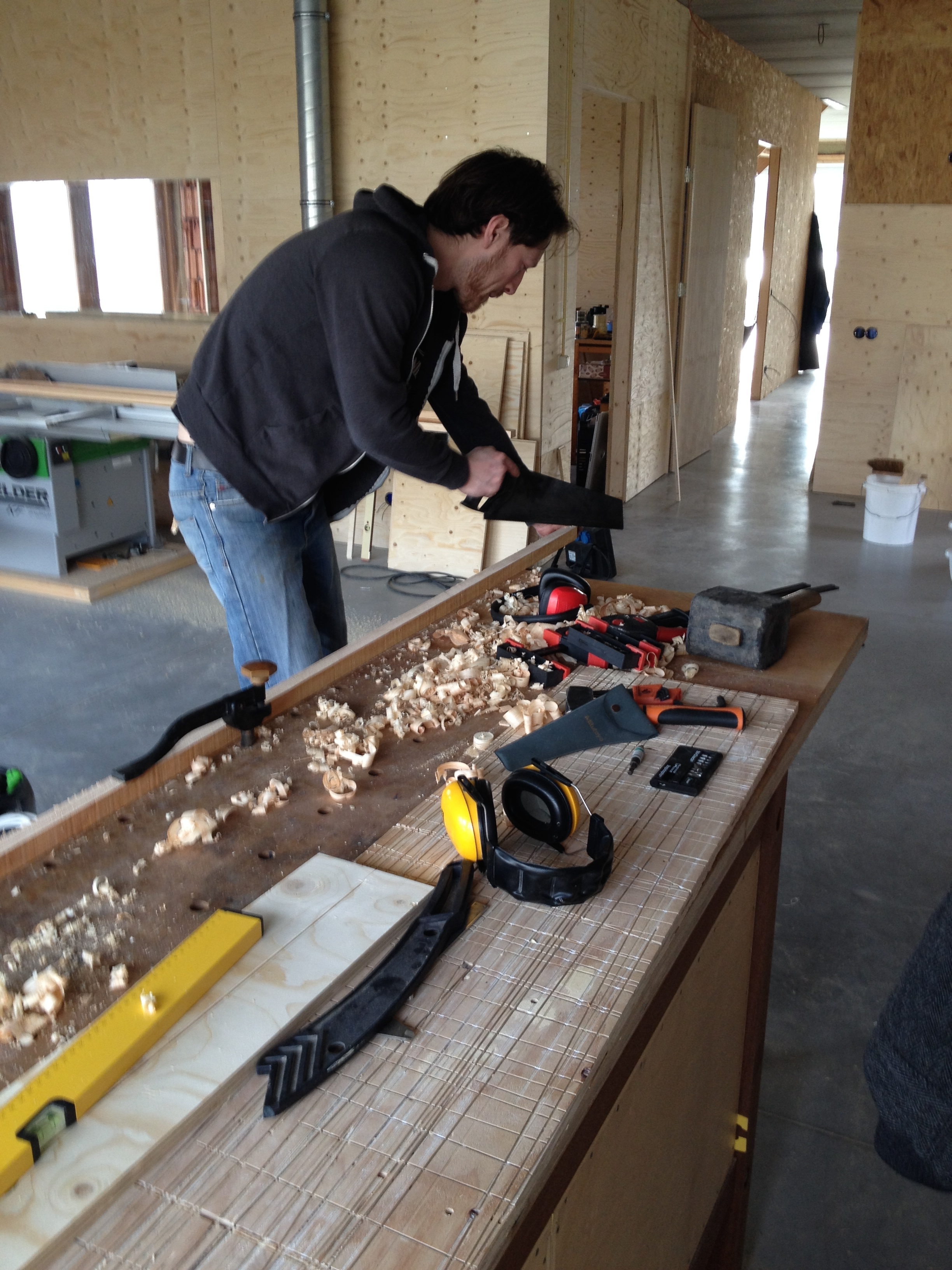 Marcus kwam vorige week een weekje uit engeland over om te helpen de houtbewerkingsmachines aan de gang te krijgen. Van dien af aan stijgt de schuur bij tijd en wijlen op als de zaag en de afzuiging aangaan en zitten er drie poezen met hun oortjes in de nek.