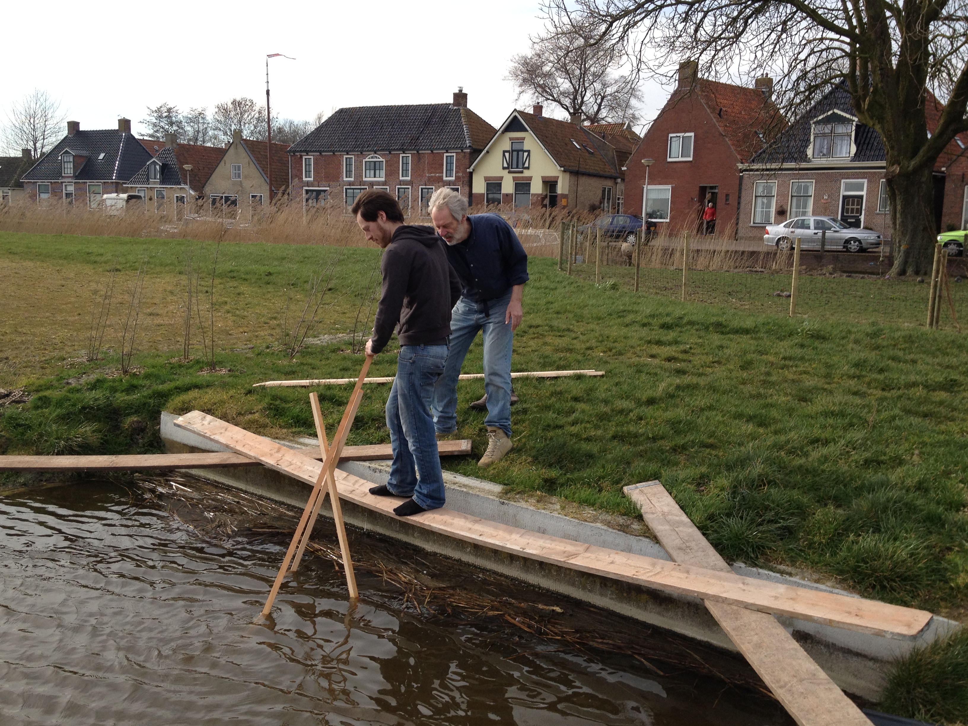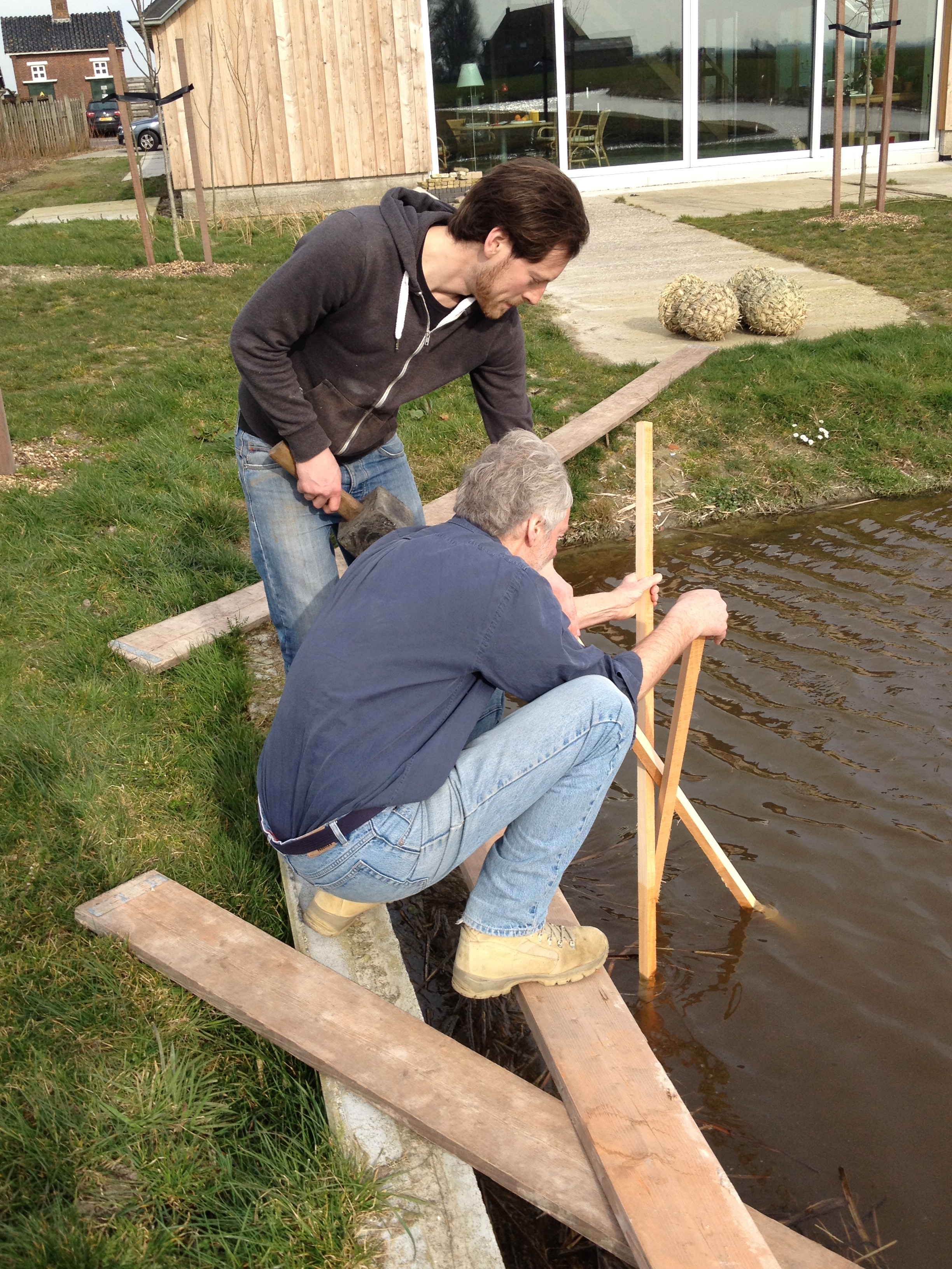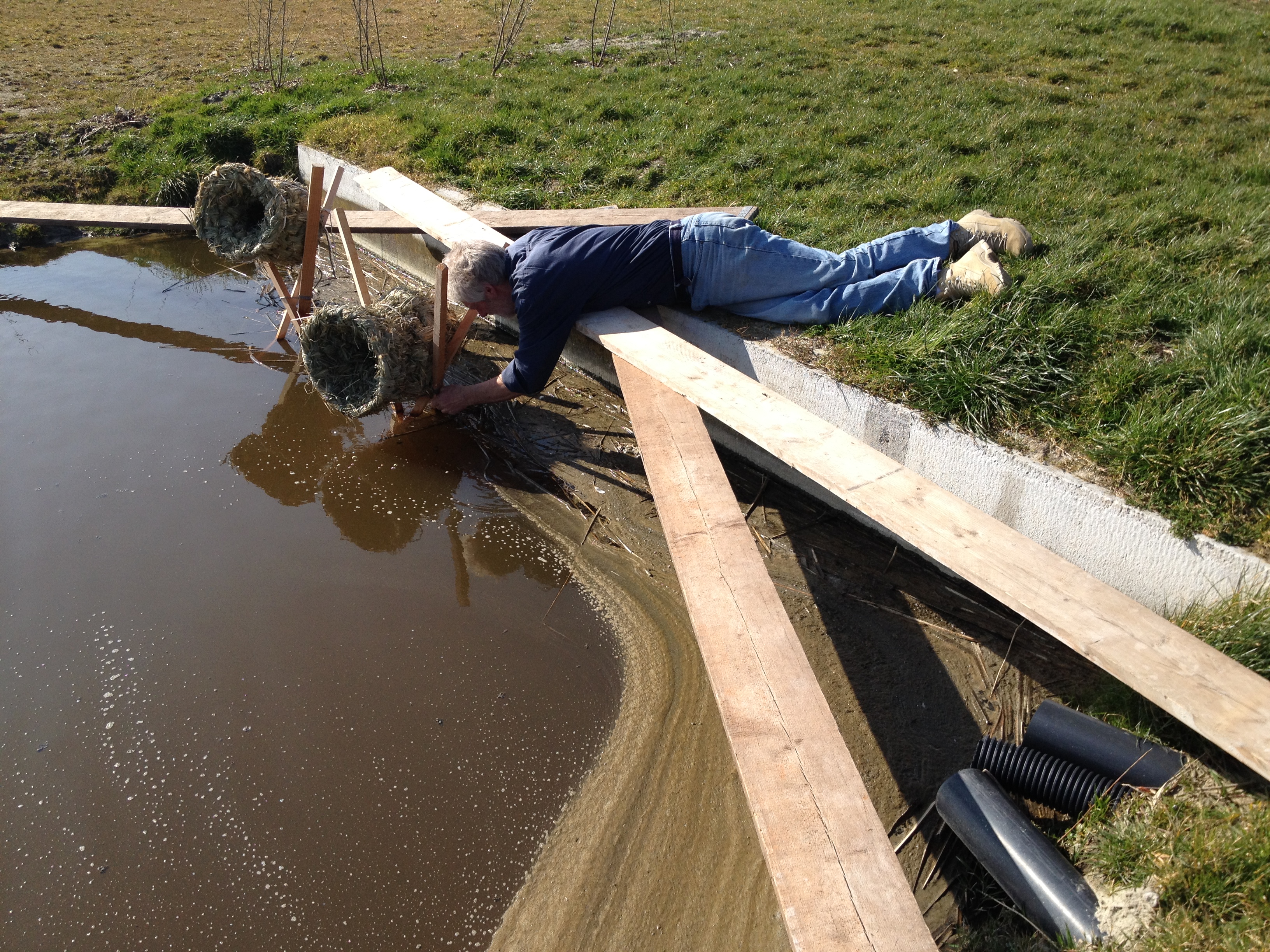 Overal zijn ineens eendekorven geplaatst en Jan Boonstra drukte ons op het hart het ook snel te doen want de eenden zijn op huizenjacht. Met hulp van Thomas staan er nu twee nog leegstaande woningen in onze sloot.