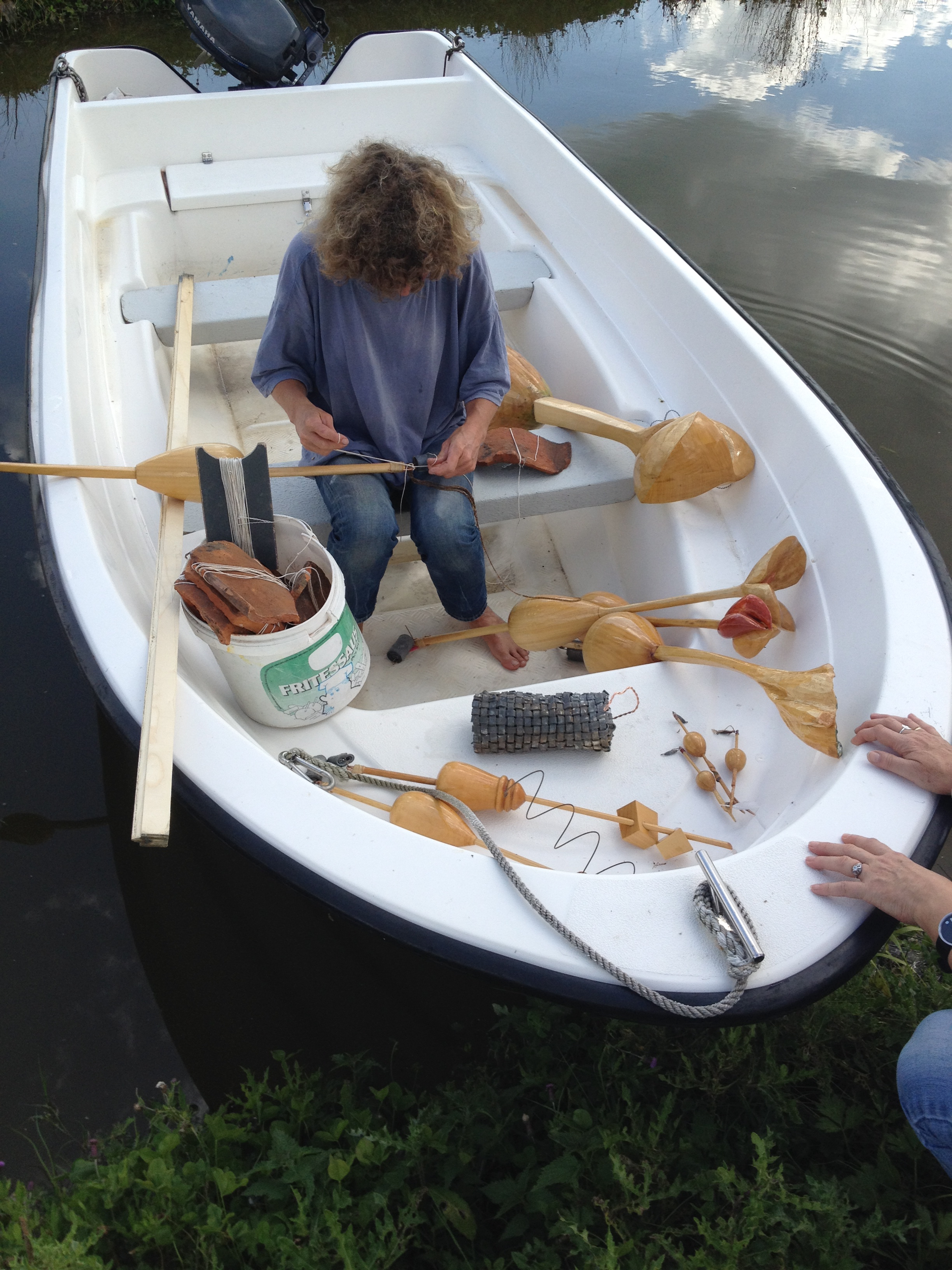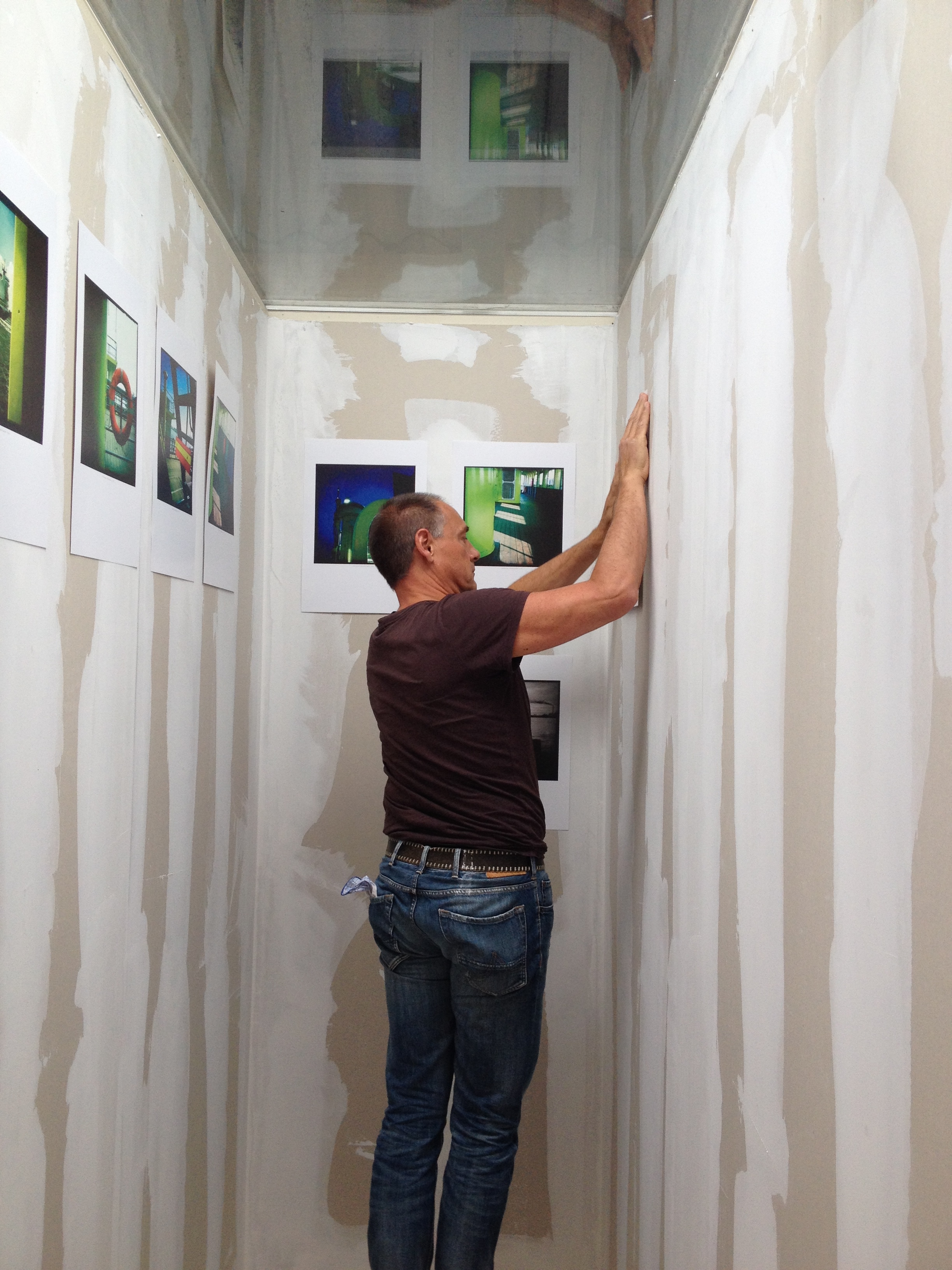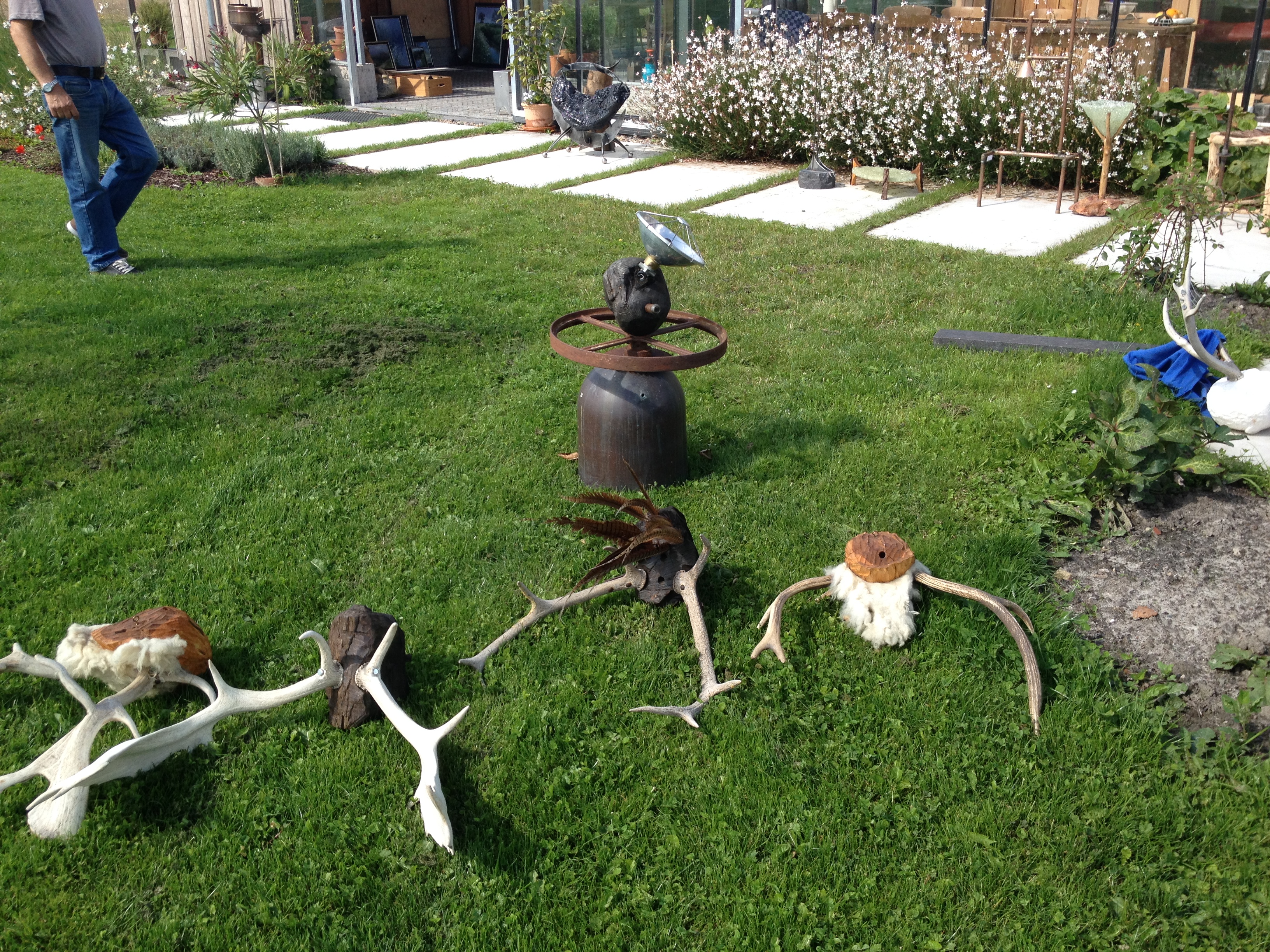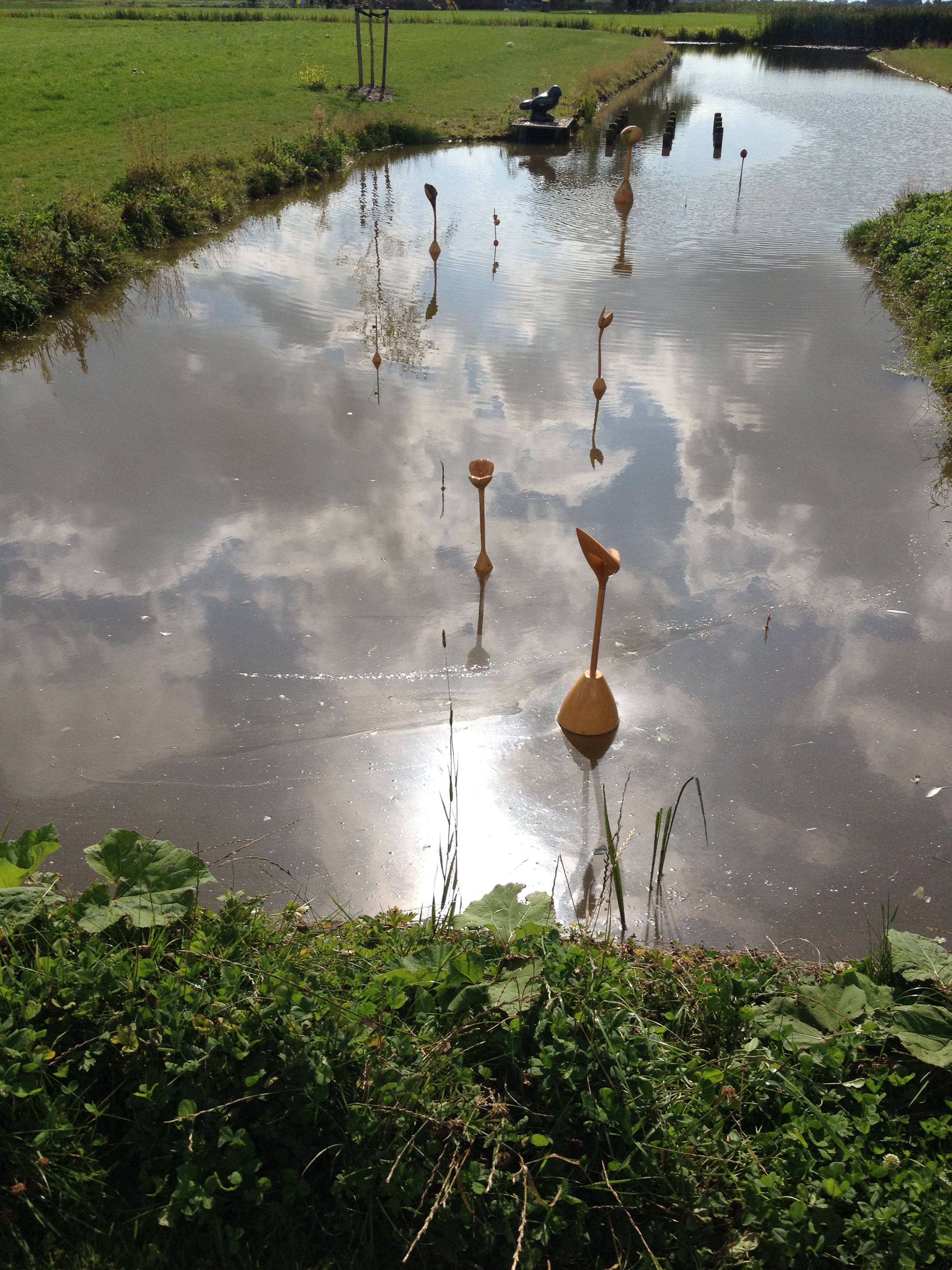 Voor de kunstroute was dat natuurlijk geen bezwaar. De woensdag ervoor kwamen 4 kunstenaars met hun werk om in te richten. Floor van der Leun, met een waterinstallatie en houten beelden, Pyr Bosma, met ruimtelijk werk, Tjeerd Landman, een ‘en plein air schilder’ en Lourens Ellen, een ruimtelijk kunstenaar die lampen maakte. Boven was een tentoonstelling van Hipstamatic foto’s van Bert, Martijn, Chris, Patrick en Bas .