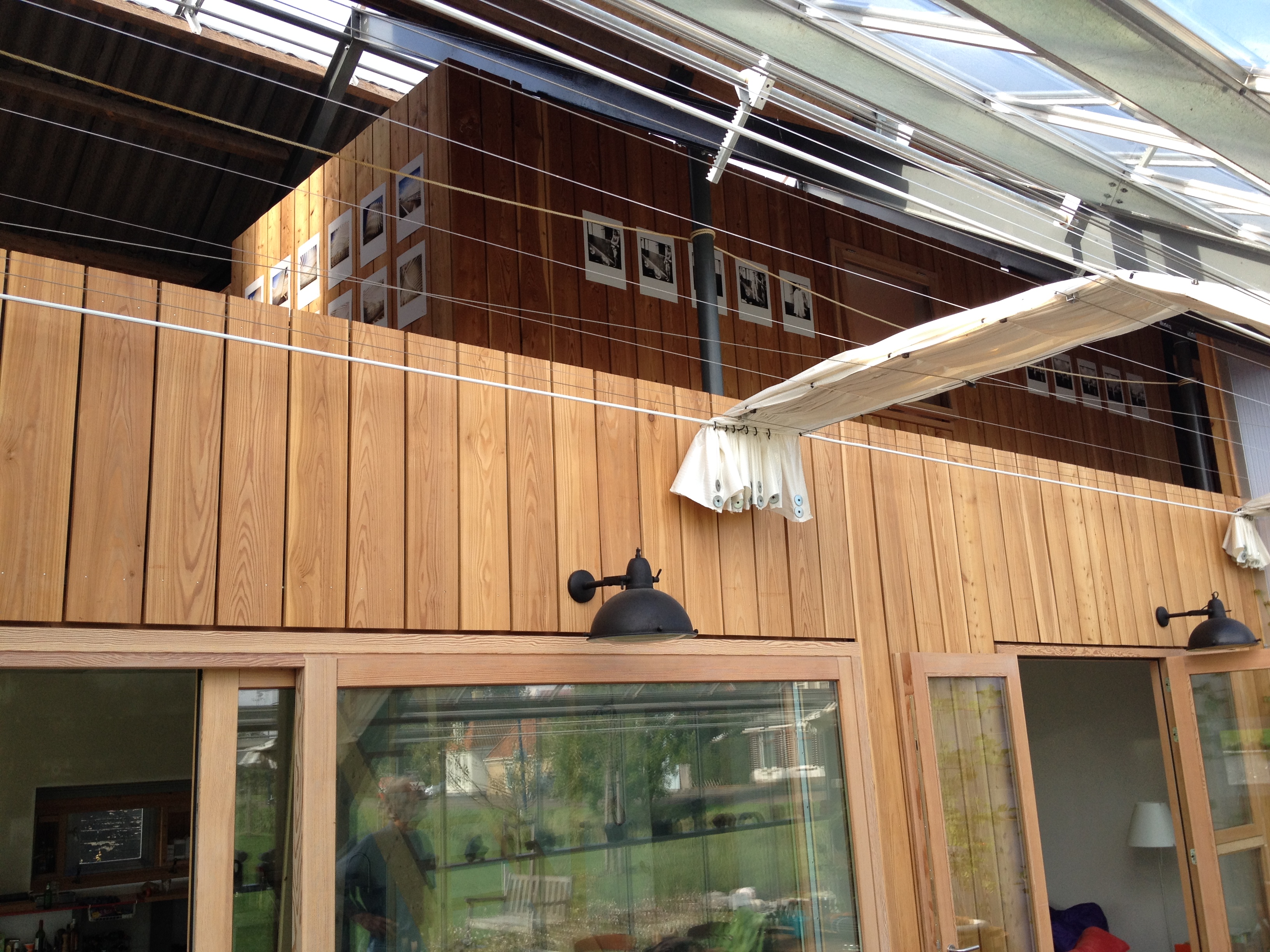 De schuur ziet er voor de oppervlakkige kijker behoorlijk af uit. In de aanloop tot de kunstroute in het weekend van 28 tot 31 augustus, zijn alle kozijnen van de deuren erin gezet en is de boel gestuct. Eindelijk witte muren ipv die rode stenen. Er komt ineens nog meer licht binnen en het beton op de vloer en plafond komen beter tot hun recht. De akoestiek heeft er alleen onder geleden. Met een beetje fantasie kunnen we ons nu in een lege tentoonstellingszaal wanen.