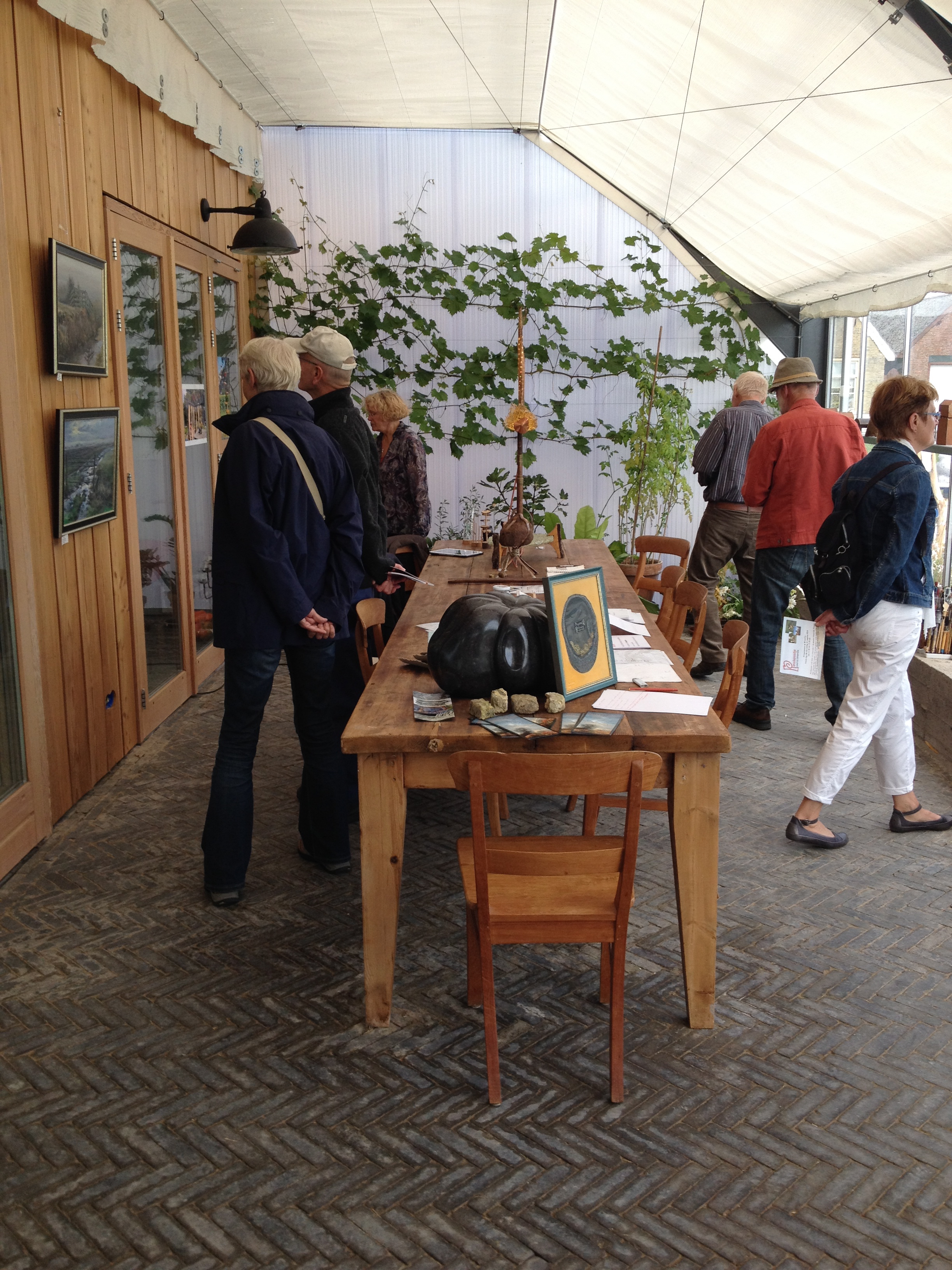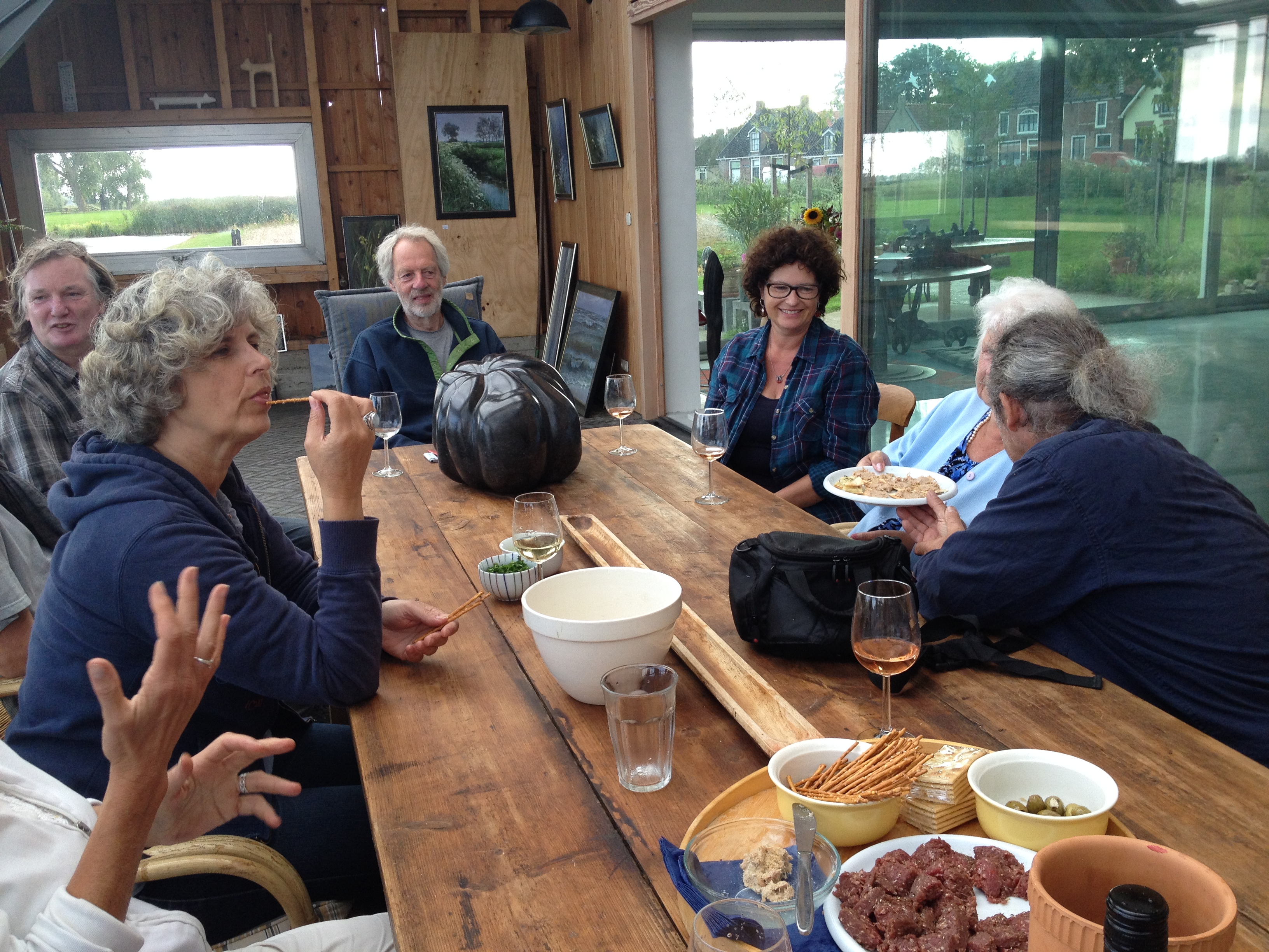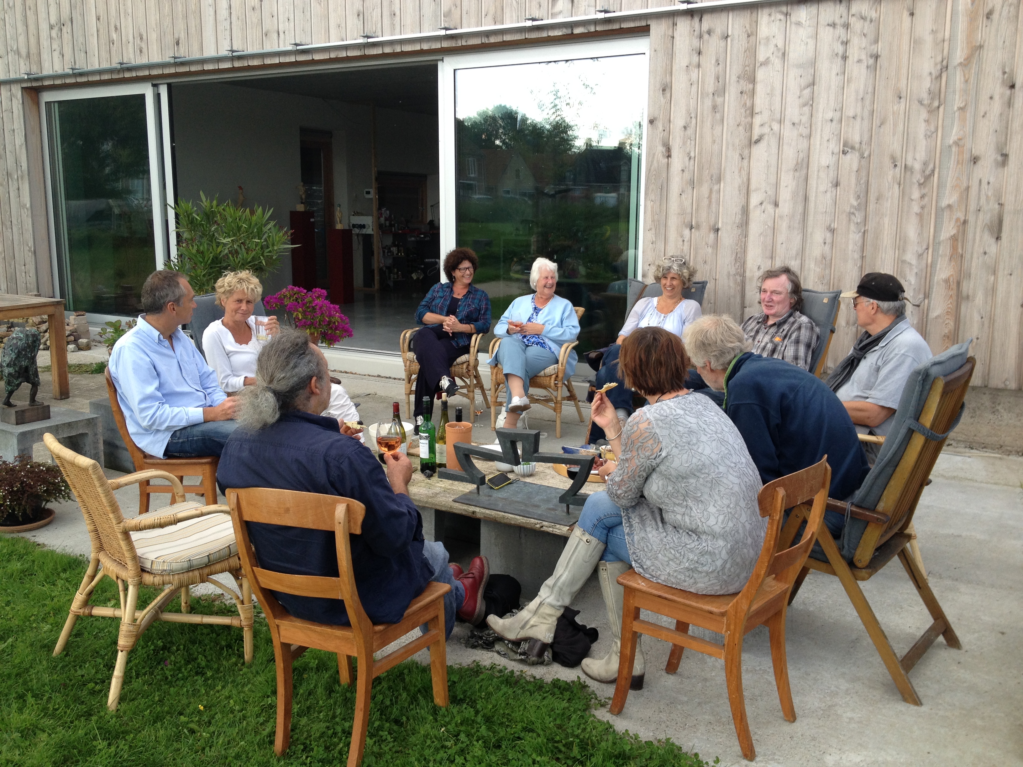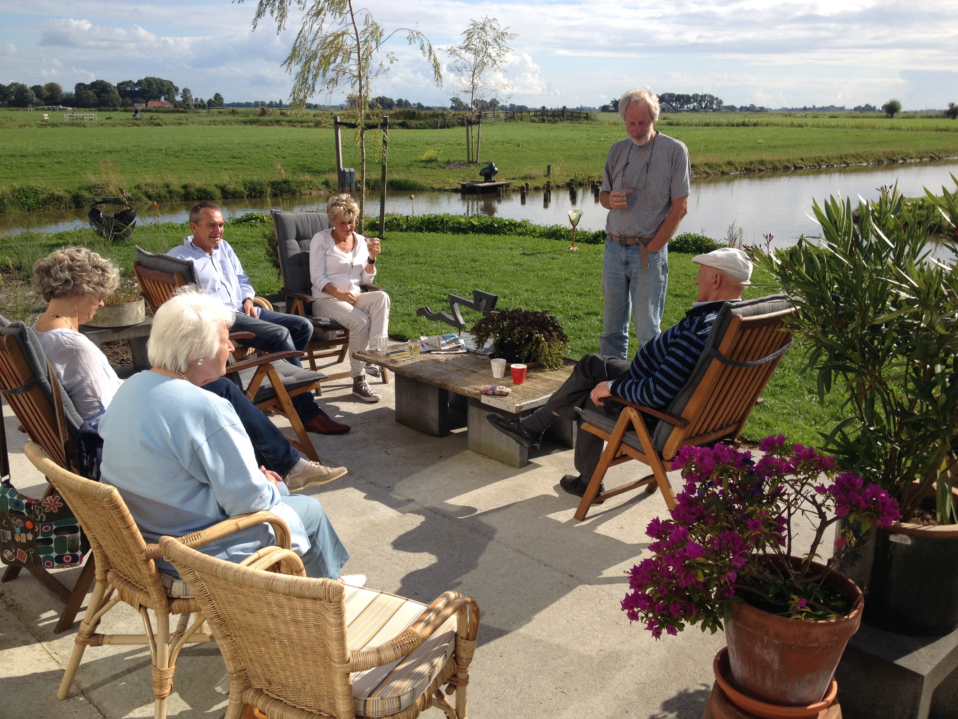 Zondag werd het hoogtepunt. Tegen verwachting was het stralend weer en een paar honderd mensen passeerden door de schuur. Tjeerd zat met zijn schildersezel in het weiland en Louwrens en zijn vrouw Elly zaten gezellig de hele dag aan tafel. Een grote delegatie Amsterdamse vrienden waren ook van de partij. We hebben het geheel natuurlijk afgesloten met een borrel.
