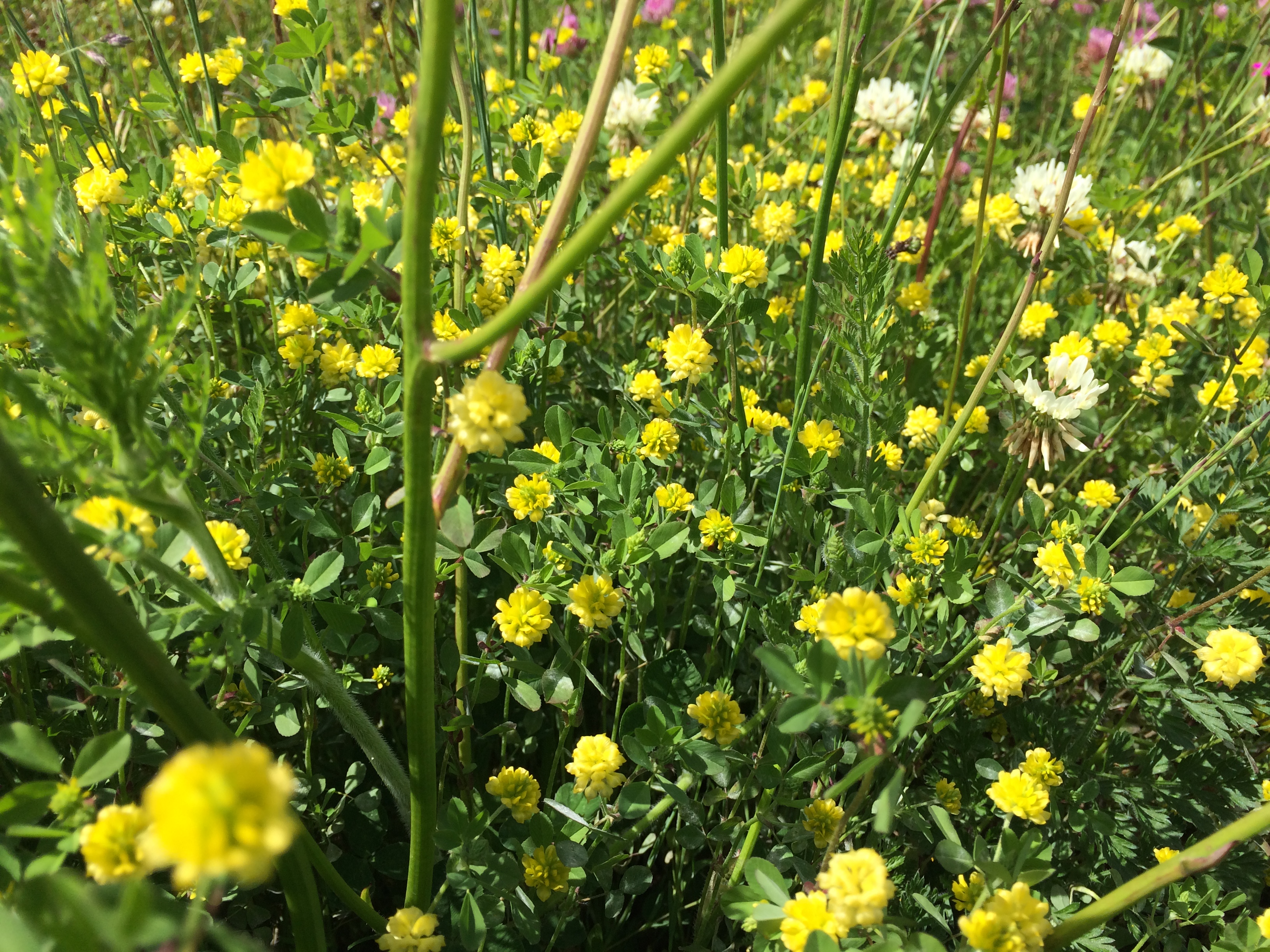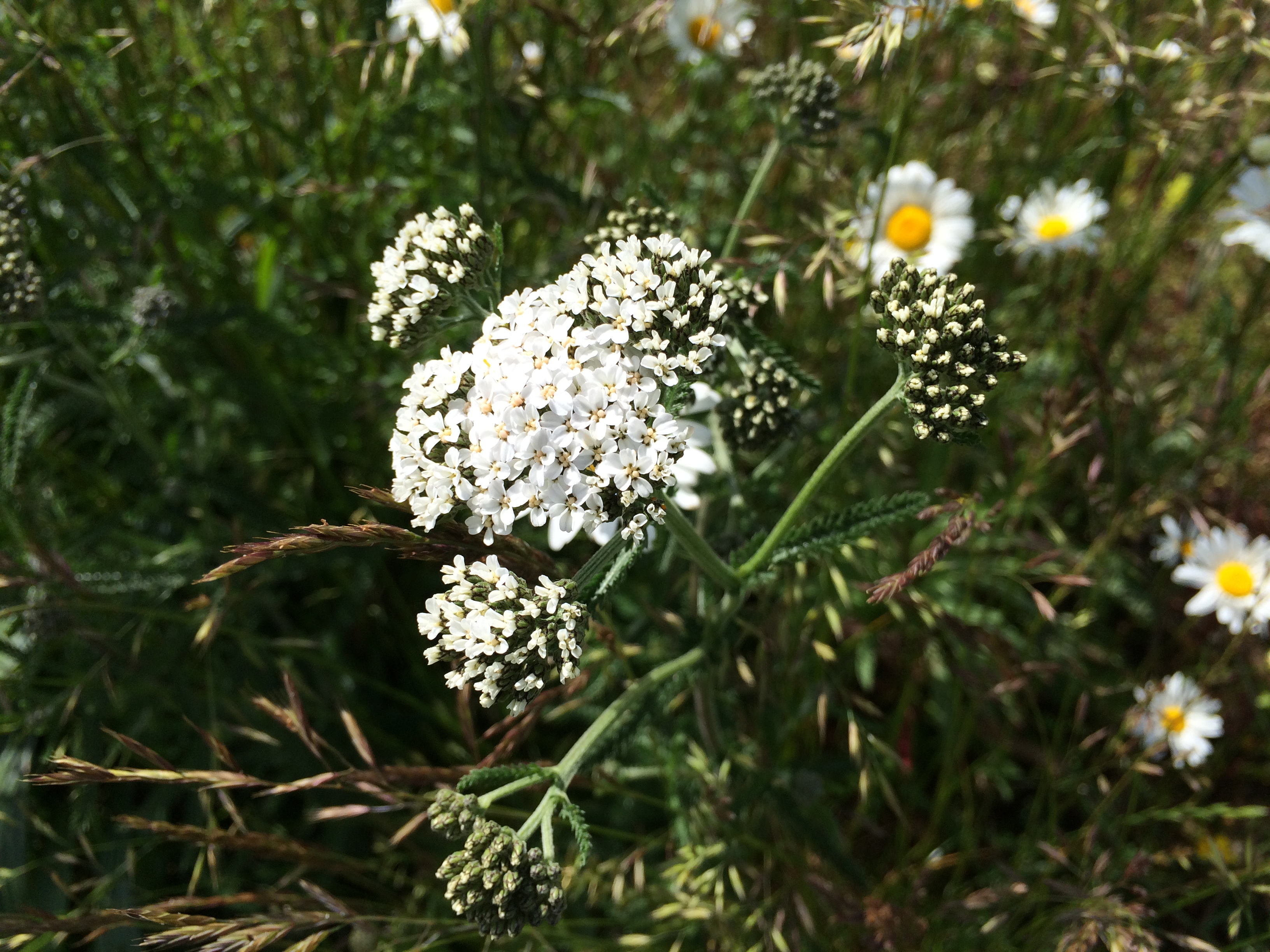 En hoera!, het is nu zover. Iedere ochtend lopen we samen met onze determineerbril op en een kopje koffie in de hand om ons veld heen. De eerste maand was alles geel met biggenkruid, haviksoor en boterbloemen en nu is alles wit van de margrieten, peen en duizendblad en de eerste roze en paarse bloemen beginnen uit te komen.