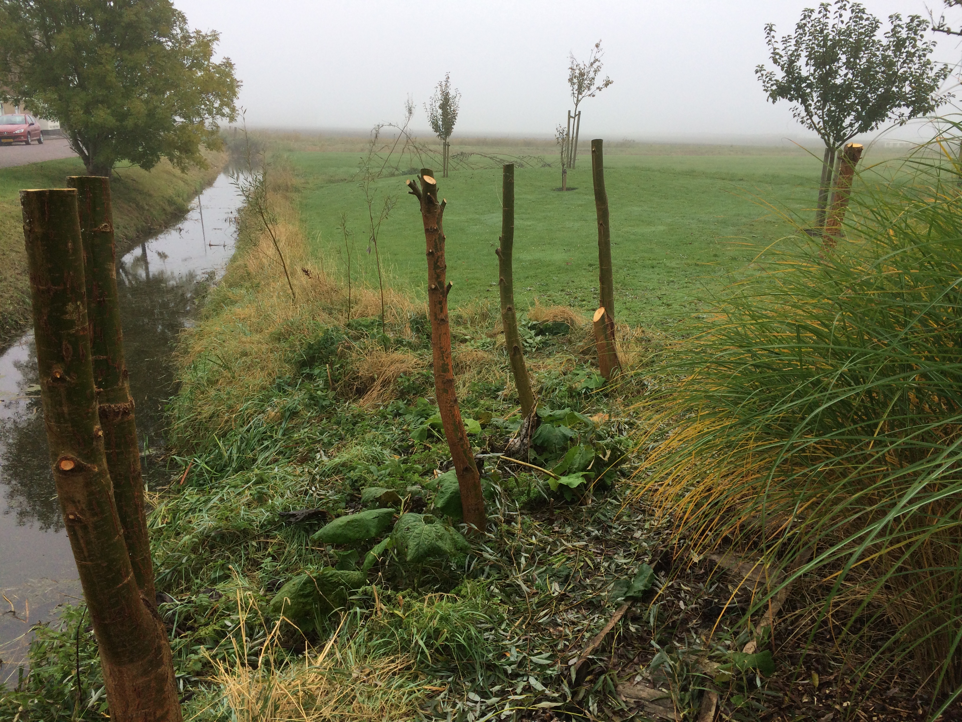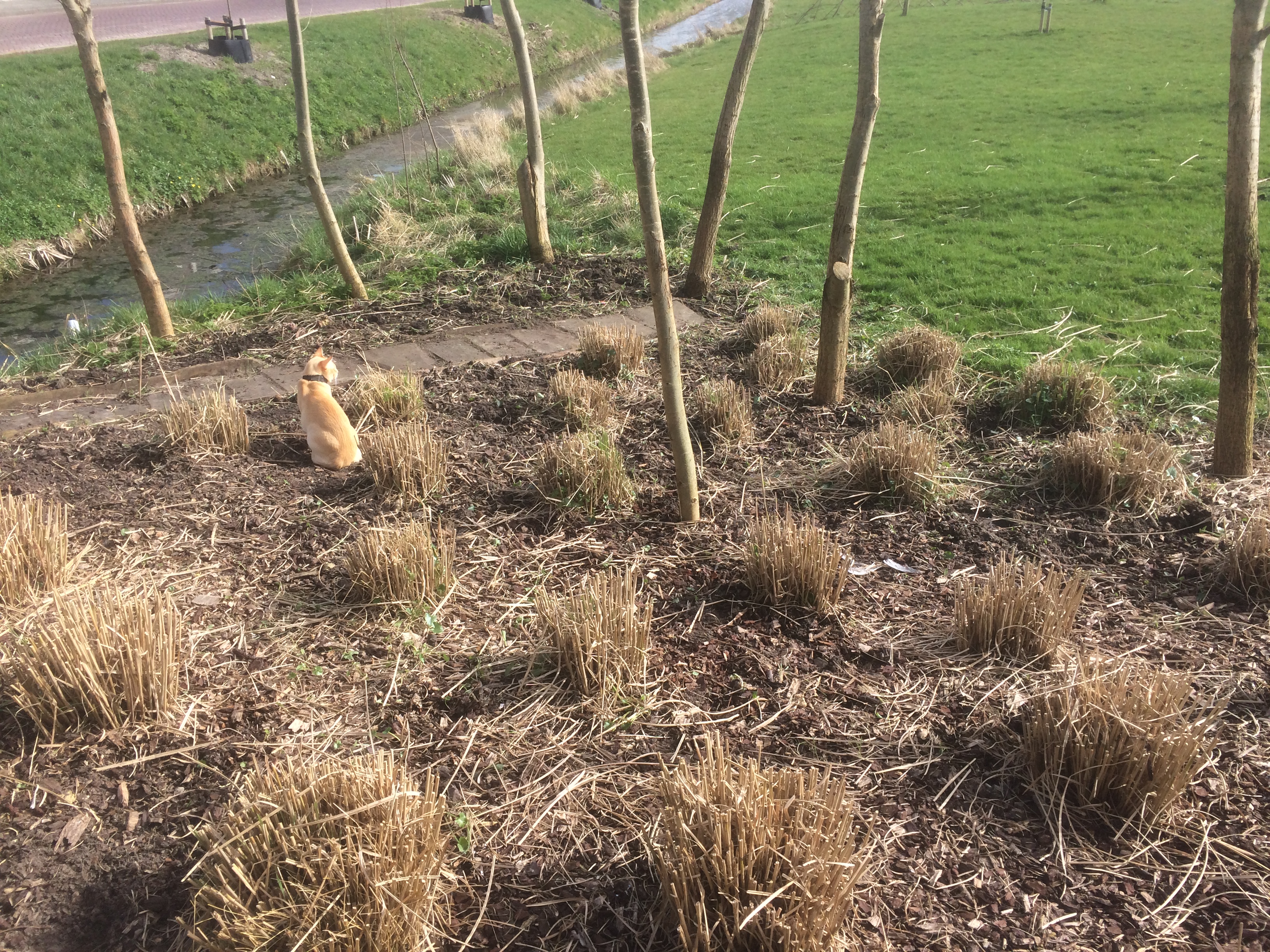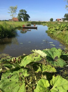 Winter in Rien is ook wel een periode van je binnen terugtrekken. Na enorm veel inspanning om de tuin winterklaar te maken komt alles even tot stilstand. Ik zal niet meer over de winteractiviteiten vertellen hoor, behalve misschien het knotten van de (27) wilgen. Opgegroeid uit ielige takken, zonder pardon in de grond geduwd, zijn ze in twee jaar tijd gegroeid tot echte bomen van wel 8 meter hoog. We hebben alles op neushoogte (van Jan) afgezaagd en bij elke boom een schietgebedje gedaan. Het zag er uit alsof het niet meer goed zou komen. Onze gebeden hebben geholpen want het ziet er nu weer uit als het hof van Eden. Alle bomen zitten vol in het blad. Van die enorme toeven die boven het riet uitsteken. Het groothoefblad is niet meer te temmen en we hebben, zoals ik vurig hoopte, gele dotters in de sloot.