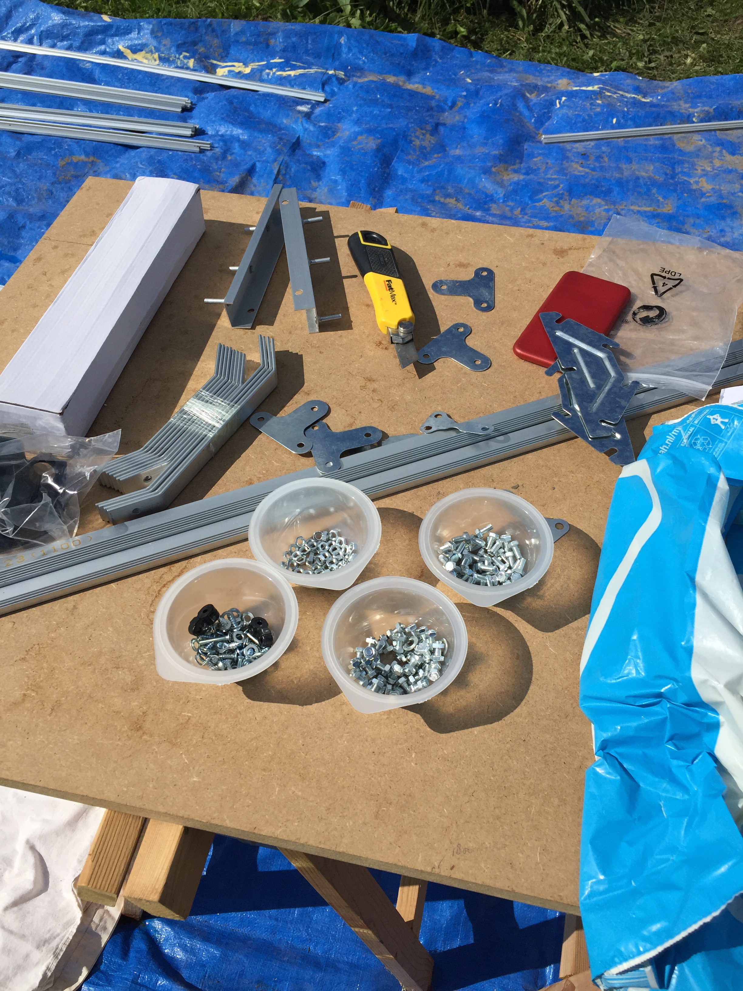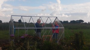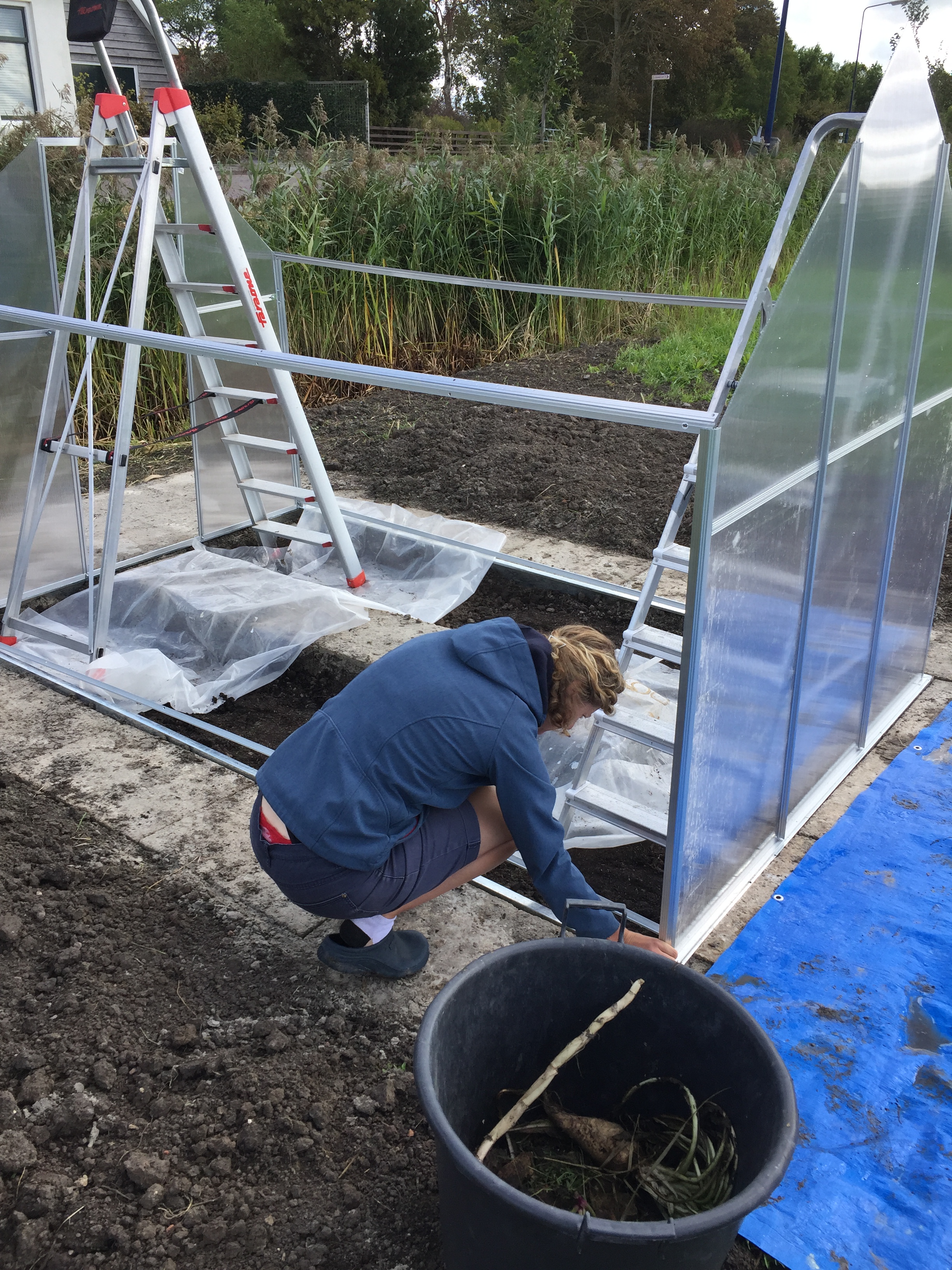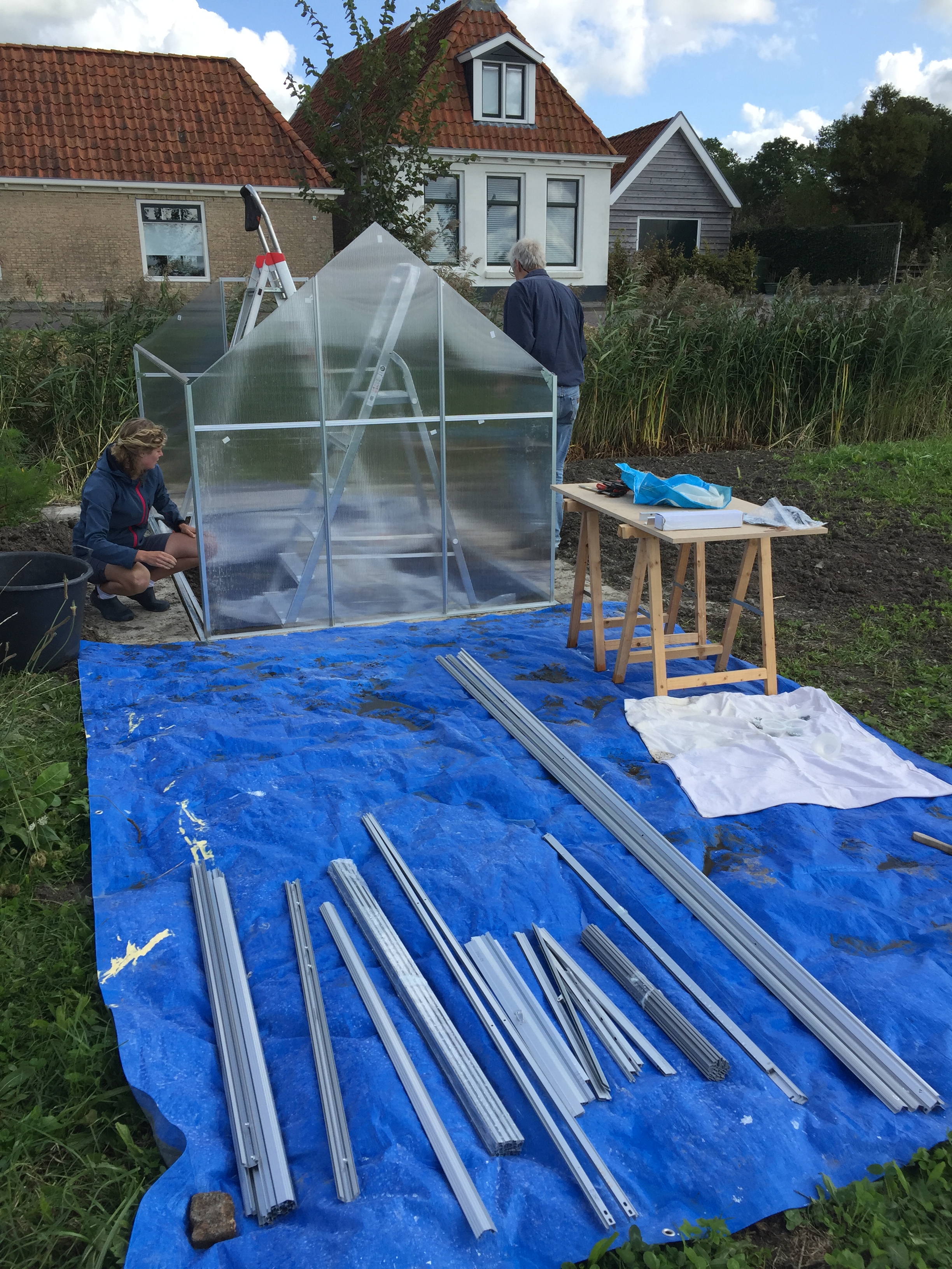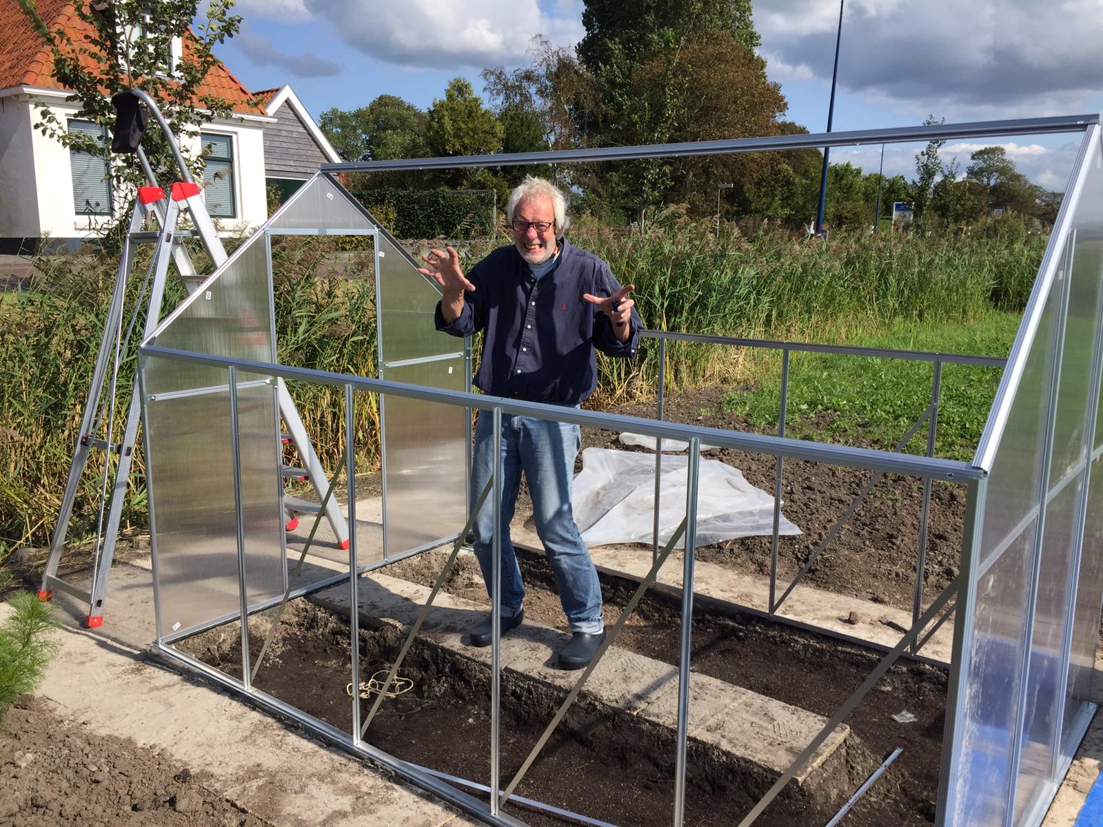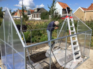 De subsidie voor de burendag is binnen en de kweekkas is aangeschaft én gebouwd (!). Na rijp beraad besloten we online een bouwpakket aan te schaffen. Het bestellen ervan was zo gedaan. Op de site stond een filmpje hoe hij in elkaar gezet moest worden en dat het ongeveer 300 minuten in beslag zou nemen. Te overzien dus…