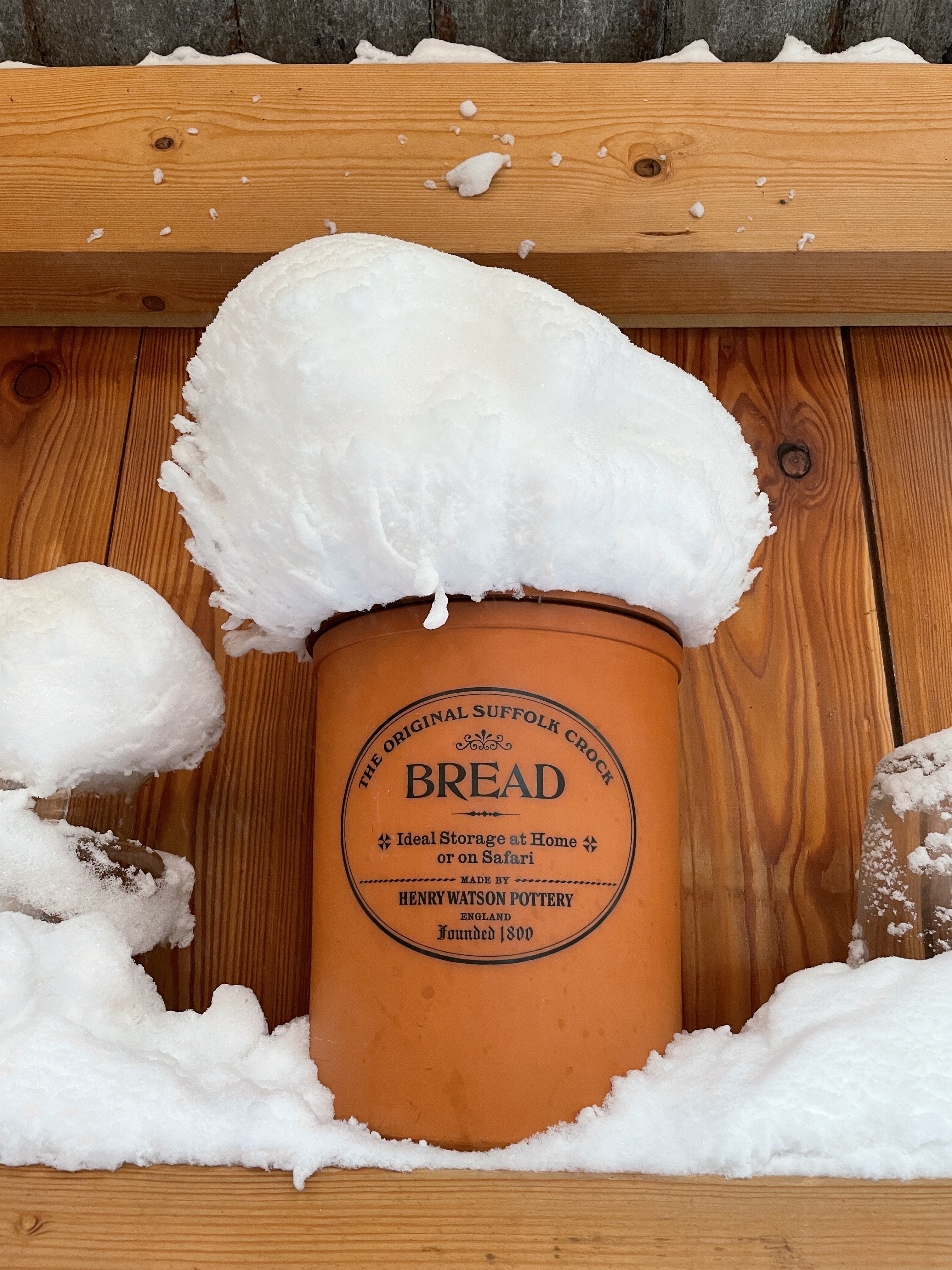 Een hele week vorst!! Wat een feest. Het begon met sneeuw die met windkracht 8 weer tot grote hoogte bij ons naar binnen werd geblazen. Een herhaling van een paar jaar geleden. Het bleek dat we toch nog een heleboel gaten hadden vergeten te dichten. Gelukkig vroor het dat het kraakte zodat we niet gelijk bang hoefden te zijn dat het via de houten vloer naar dieper gelegen lagen zou lopen. Terwijl heel Friesland de schaatsen aan het slijpen was, verplaatsten wij een volle dag sneeuw van binnen naar buiten.