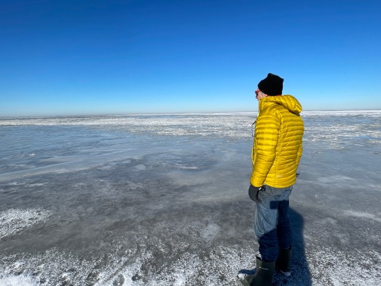 Wij hebben ons onthouden van het schaatsen. De eerste gebroken heup in het dorp was al een feit en de huisartsenposten waren overbelast. Dus wandelen leek ons toch veiliger. Het bevroren wad was oogverblindend mooi en een wandeling naar Lytsewierum over het water was weer heel anders dan over land.