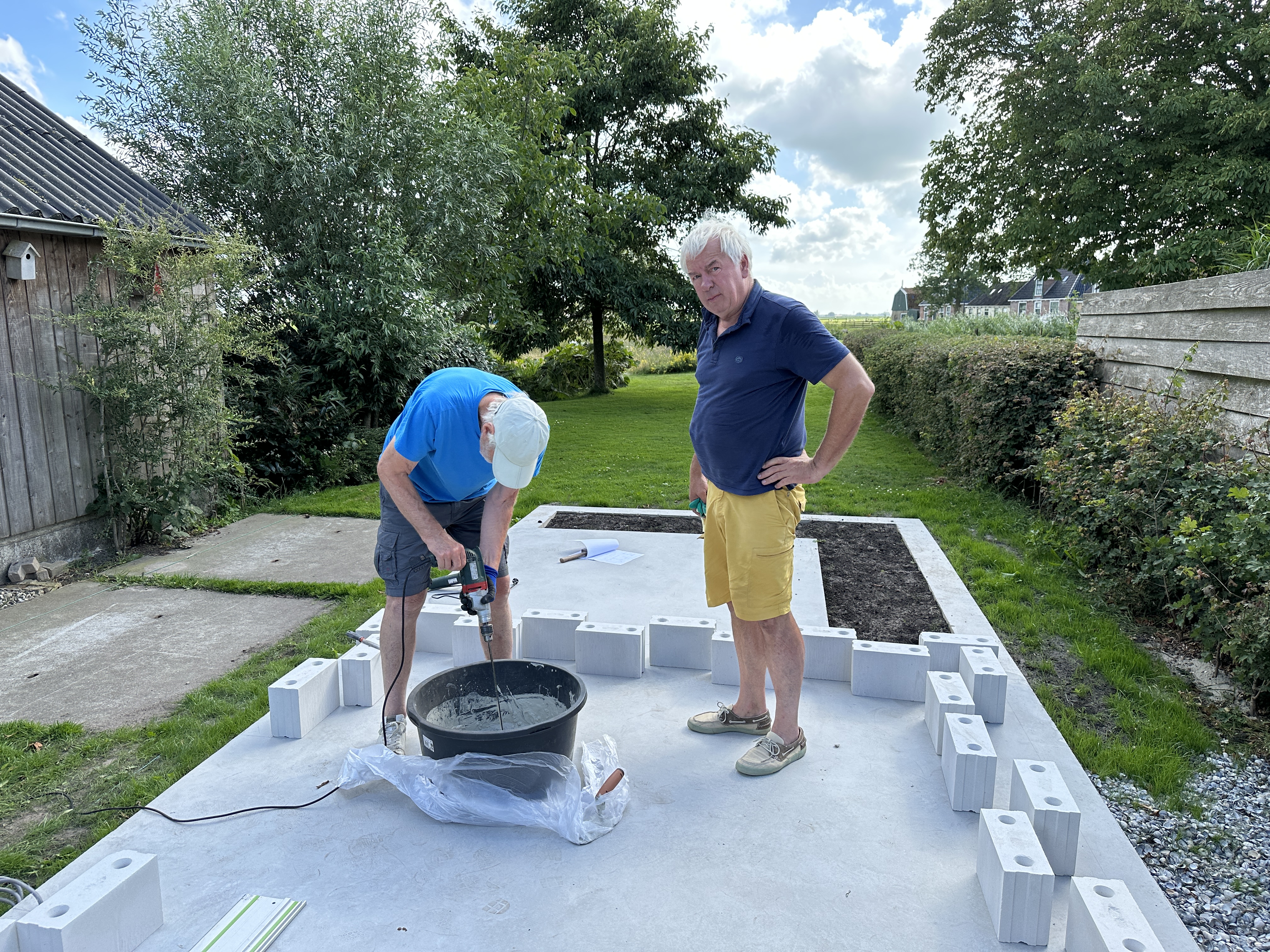 Er werd een kar vol met hout en stenen gehaald en de bouw kon beginnen. Peter stond al vroeg op de stoep en had er zin in. Jan ging steeds donkerder kijken omdat ruwbouw niet echt zijn kop thee is. Het was mijlen verwijderd van zwaluwstaartjes en perfect passende houtverbindingen maar hij weerde zich kranig. Ik voelde me meer op mijn gemak.
