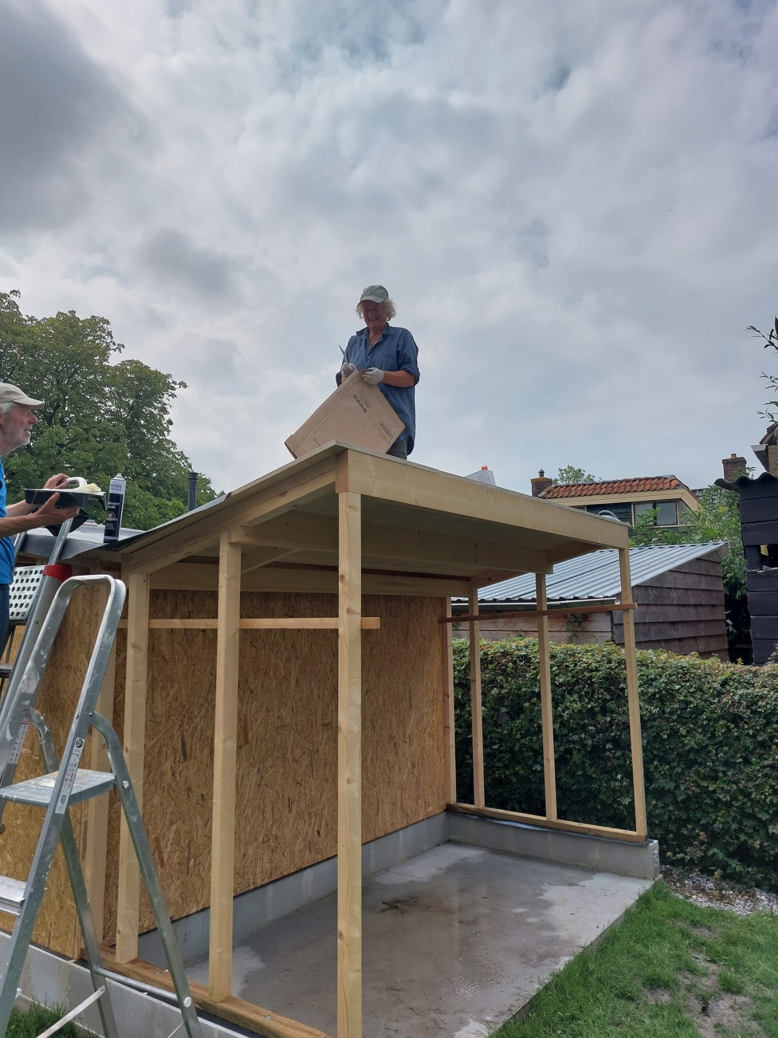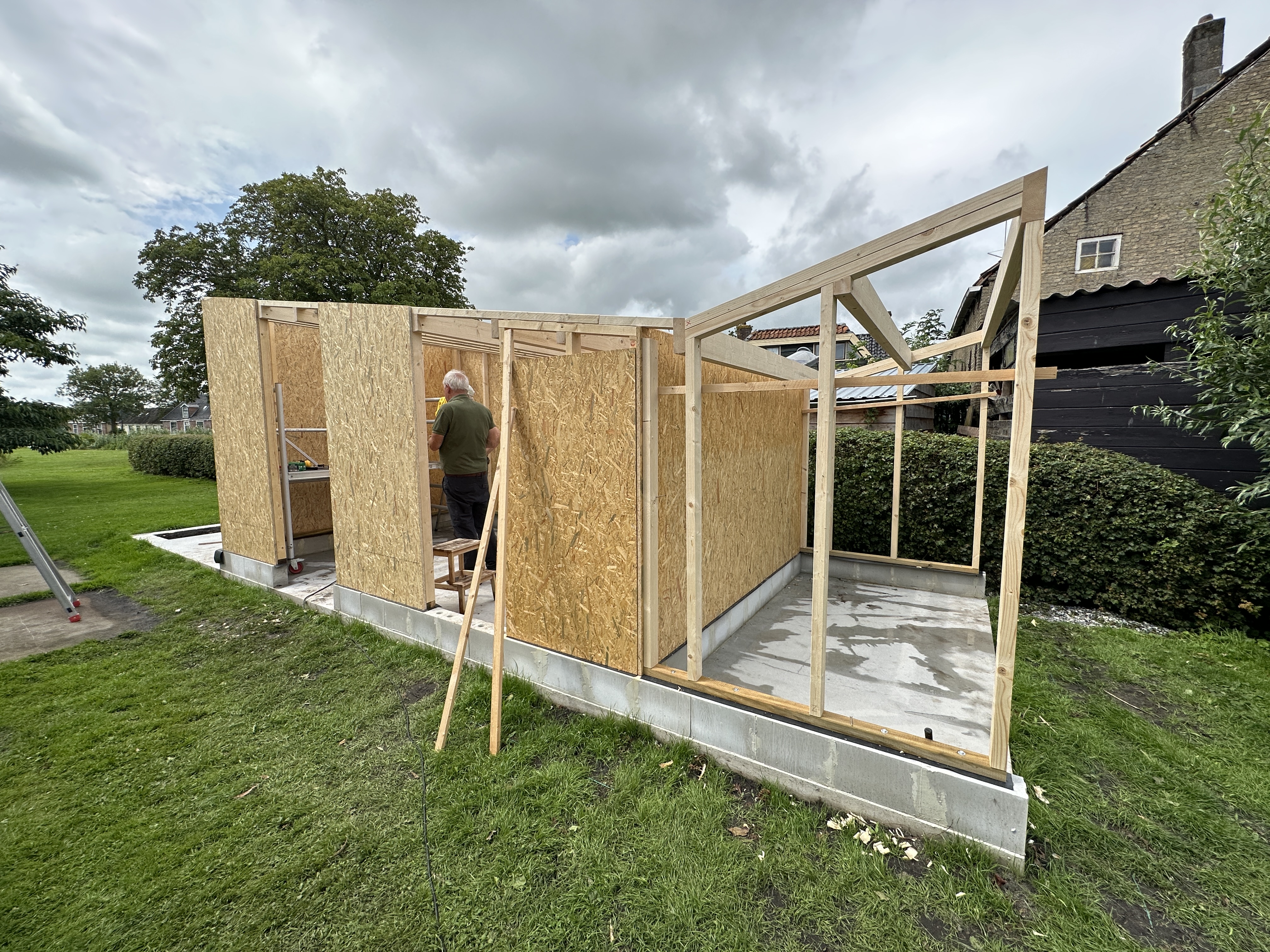 De eerste schetsen resulteerden in een niet alledaagse vorm. Leuk, maar dat leverde natuurlijk extra uitdagingen op. Peter Verlinden bood aan ons te helpen. Hij was, zoals eerder vertoond, van onschatbare waarde bij het tekenen van alle technische details en het maken van een grove begroting, maar hij wilde ook graag de handen uit de mouwen steken om die schuur ‘even neer te zetten’ in een paar dagen.